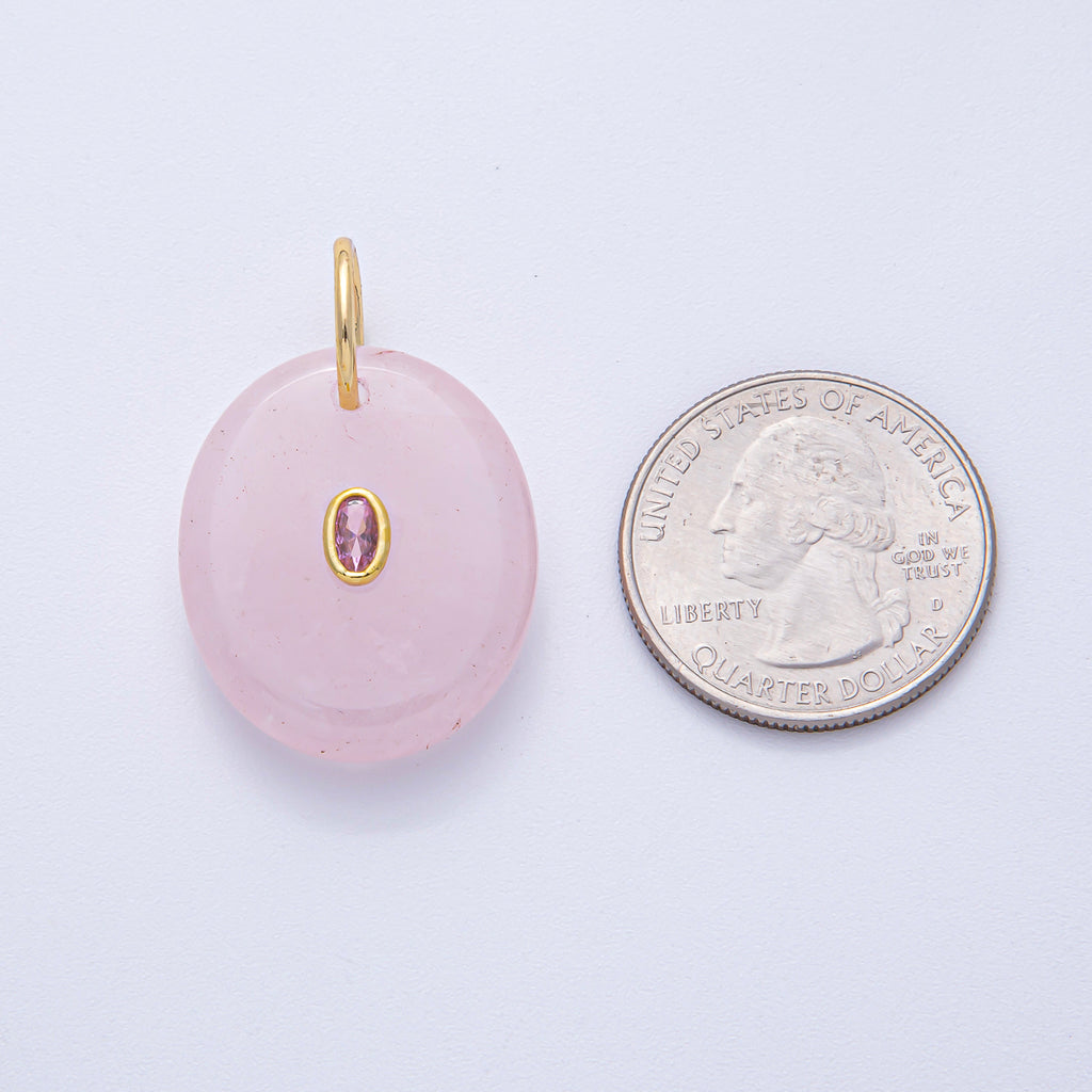18K Gold Filled 27mm CZ Embedded Rose Quartz, Clear Quartz, Amethyst Oval Gemstone Charm | AK058 AK059