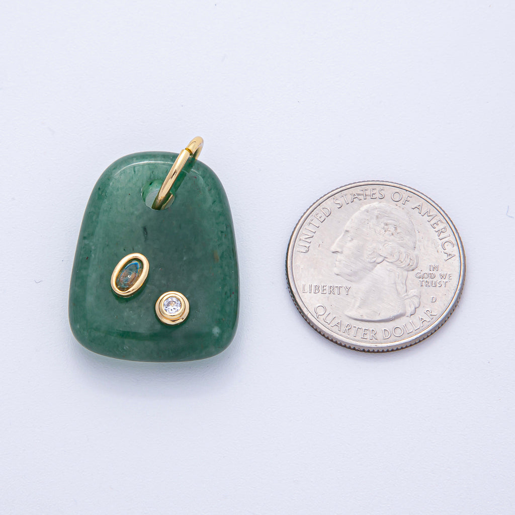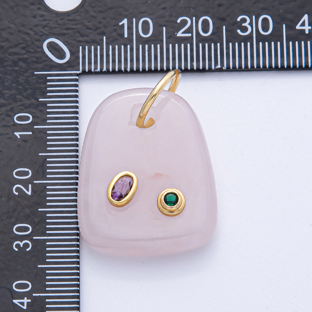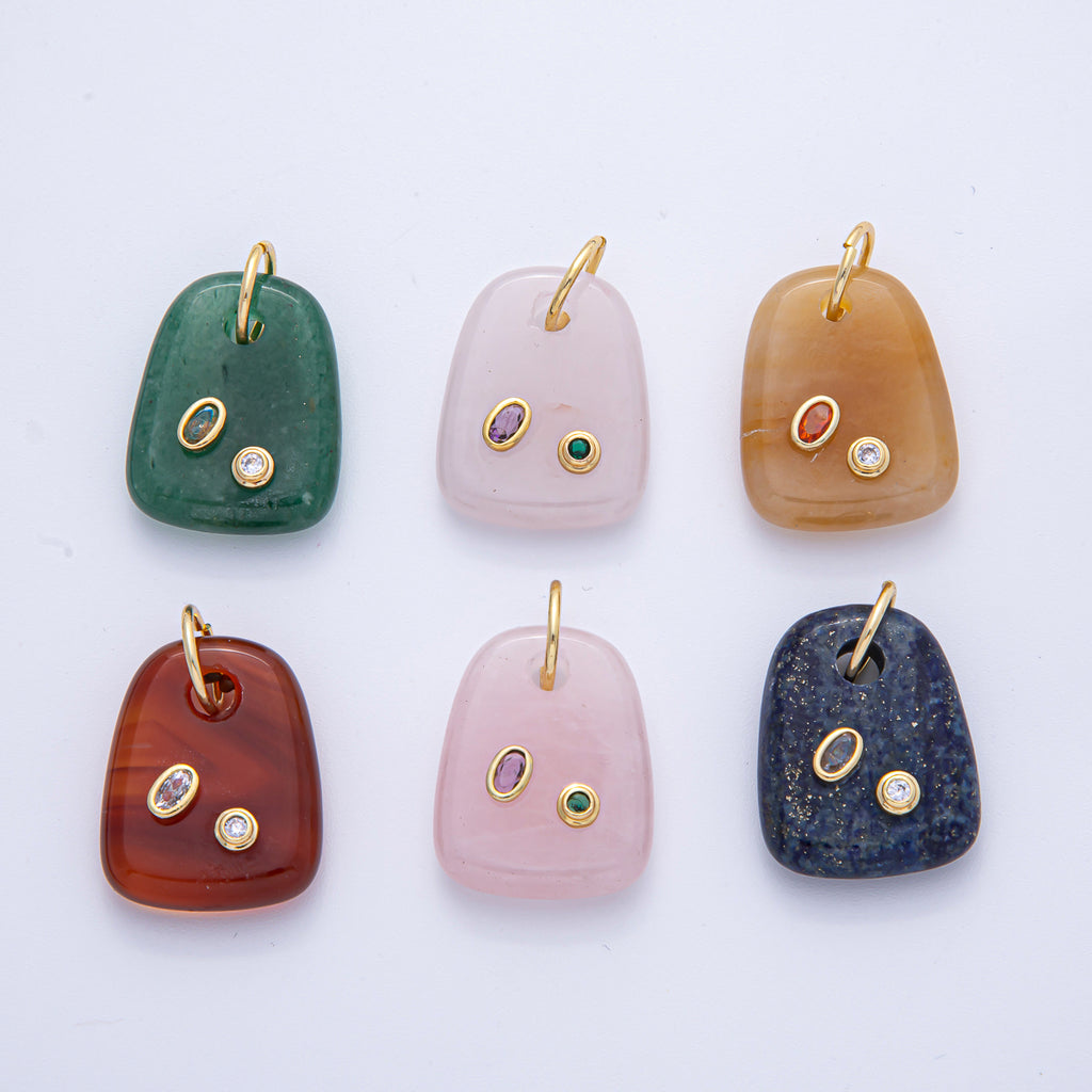 18K Gold Filled 29mm Multicolor CZ Embedded Natural Gemstone Rectangular Charm | AK055 - AK057