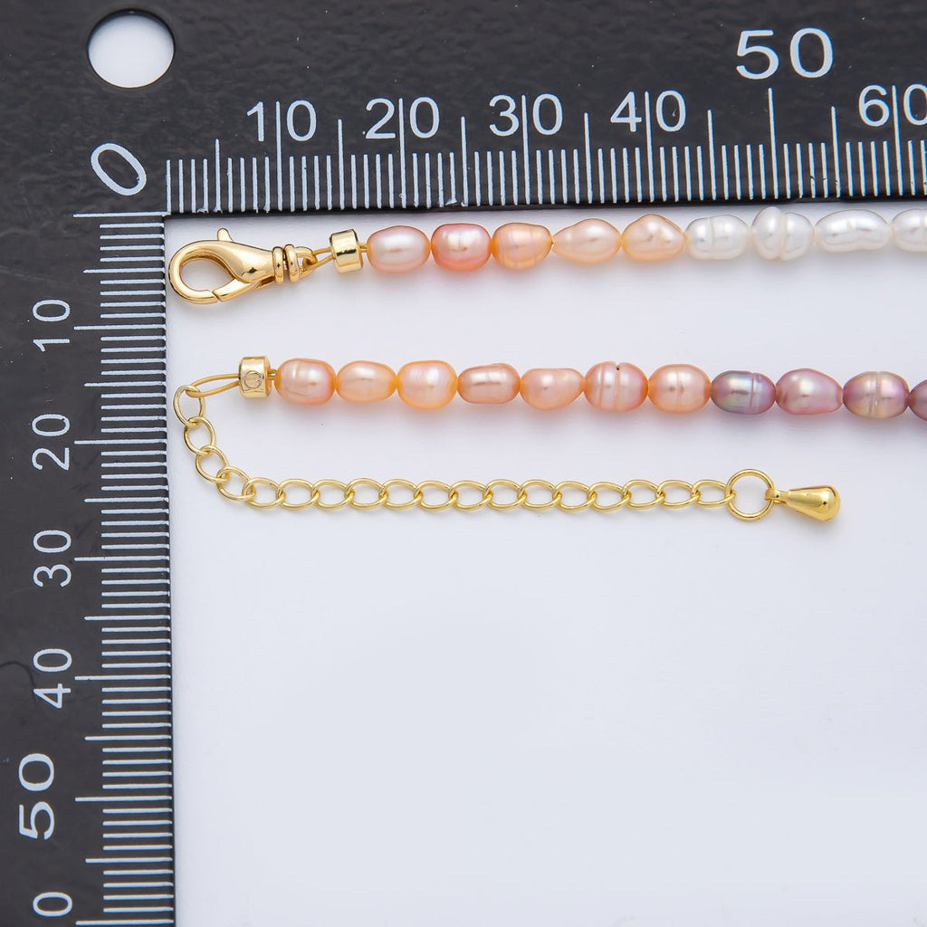 18K Gold Filled 3.8mm White Purple Champagne Peach Gradient Freshwater Pearl 14 Inch Necklace | WA-3836