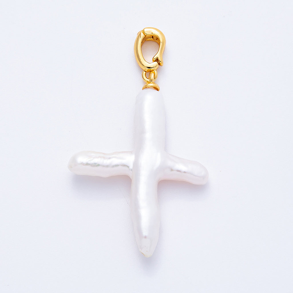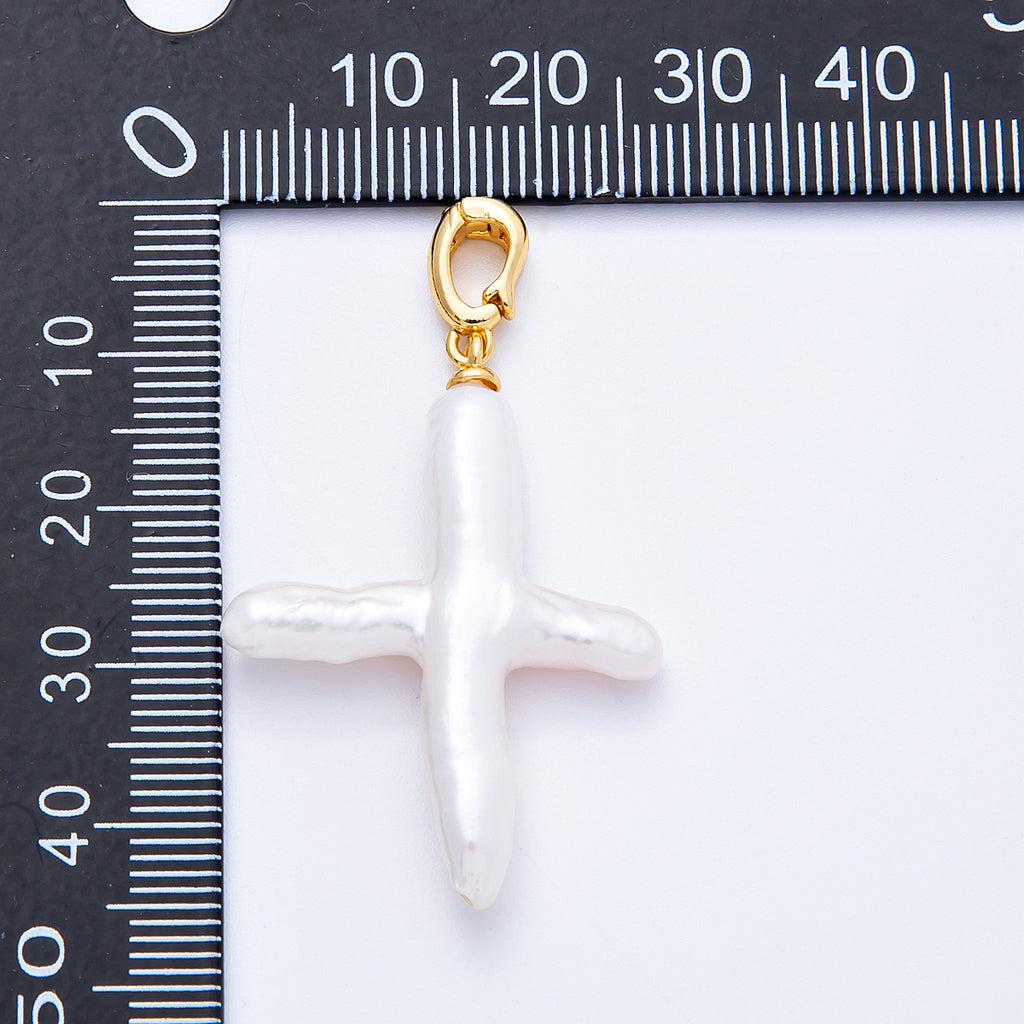 18K Gold Filled 37mm Shell Pearl Irregular Cross Religious Pendant | Charms-00171