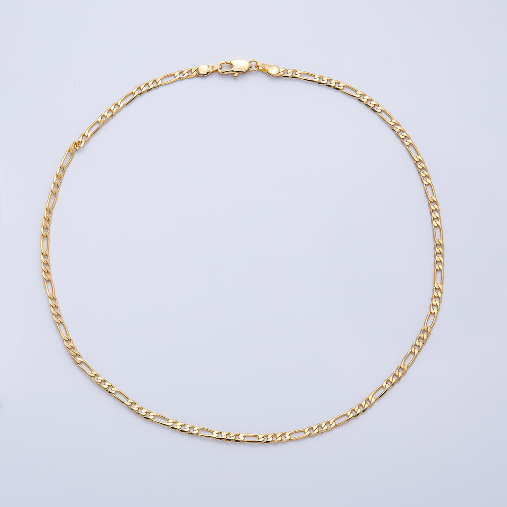 18K Gold Filled 3mm Minimalist Figaro Chain 16 Inch Choker Necklace | WA-3986