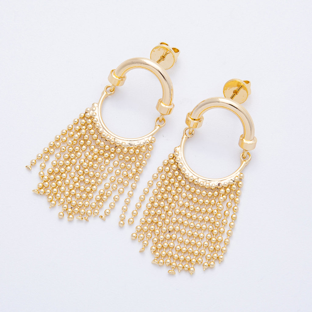 18K Gold Filled 45mm Bead Ball Chain Tassel Geometric Drop Stud Earrings | T066