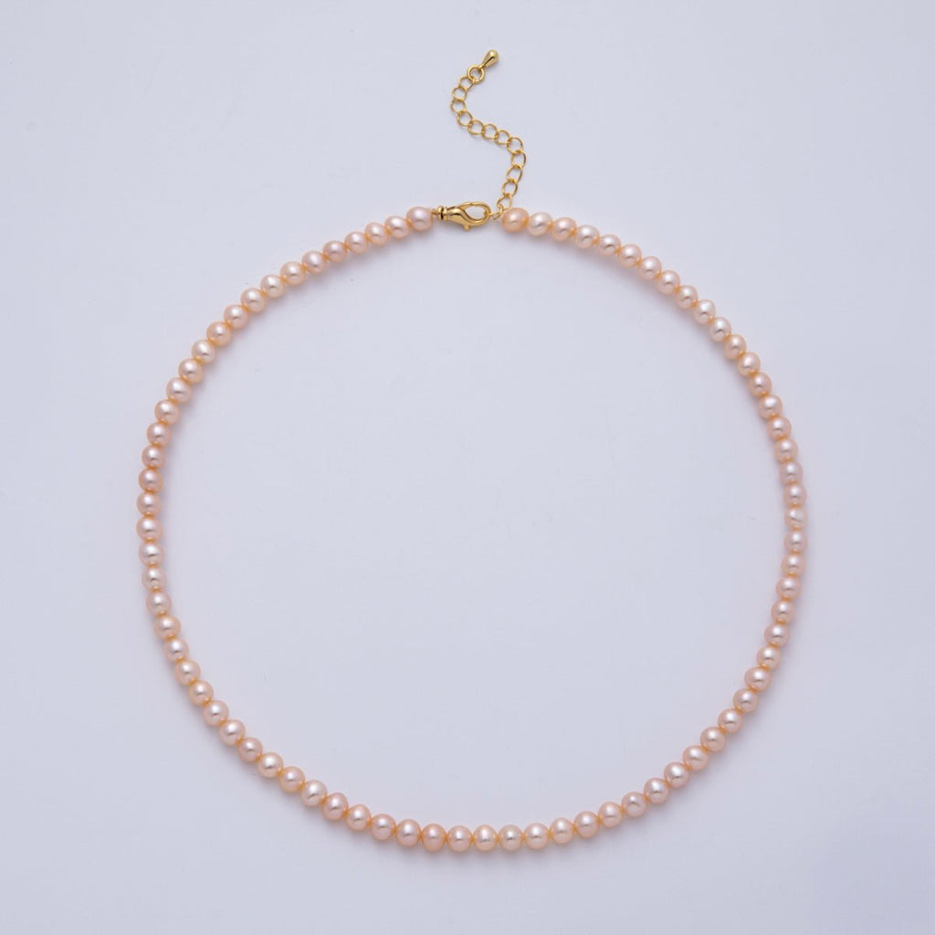 18K Gold Filled 5.5mm Pink Round Button Shell Pearl 16.25 Inch Necklace | WA-4078