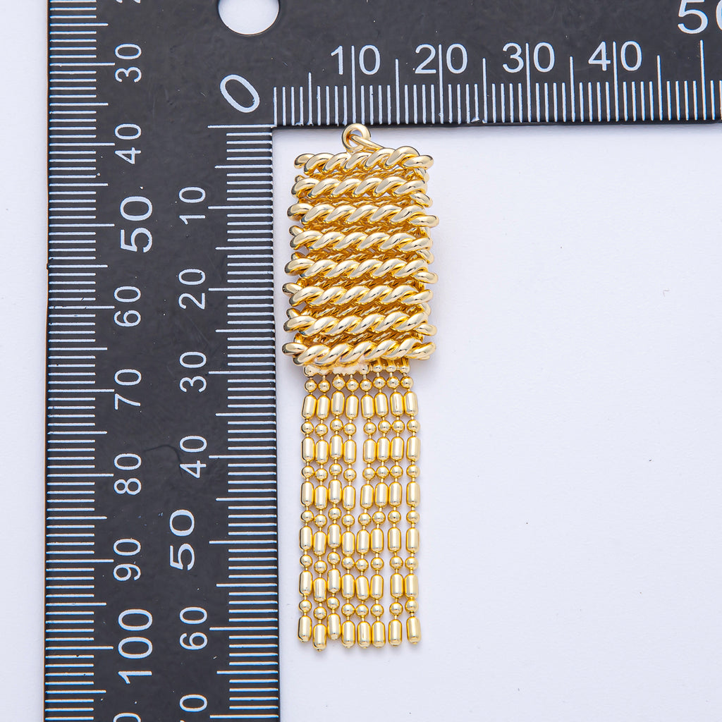 18K Gold Filled 61mm Twisted Rope Bead Tube Chain Tassel Charm | AF1438