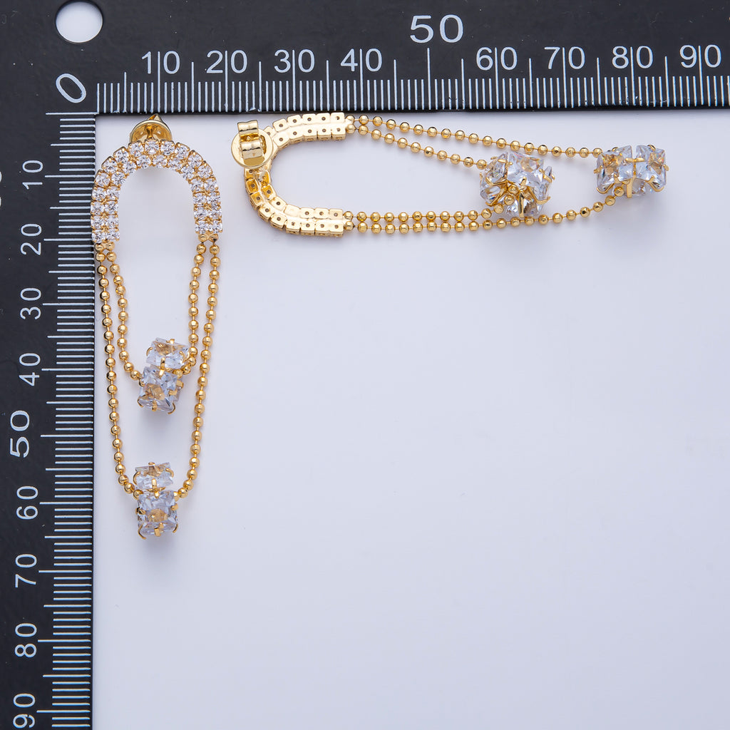 18K Gold Filled 63mm Clear CZ Micro Paved Rondelle Bead Geometric Drop Stud Earrings | T069