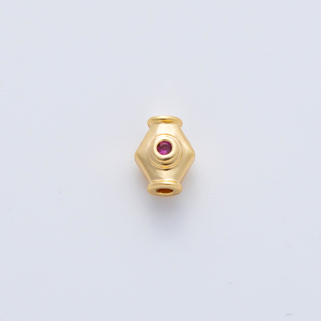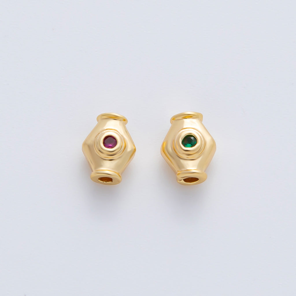 18K Gold Filled 6mm Fuchsia, Green CZ Capsule Rhombus Beads | B339