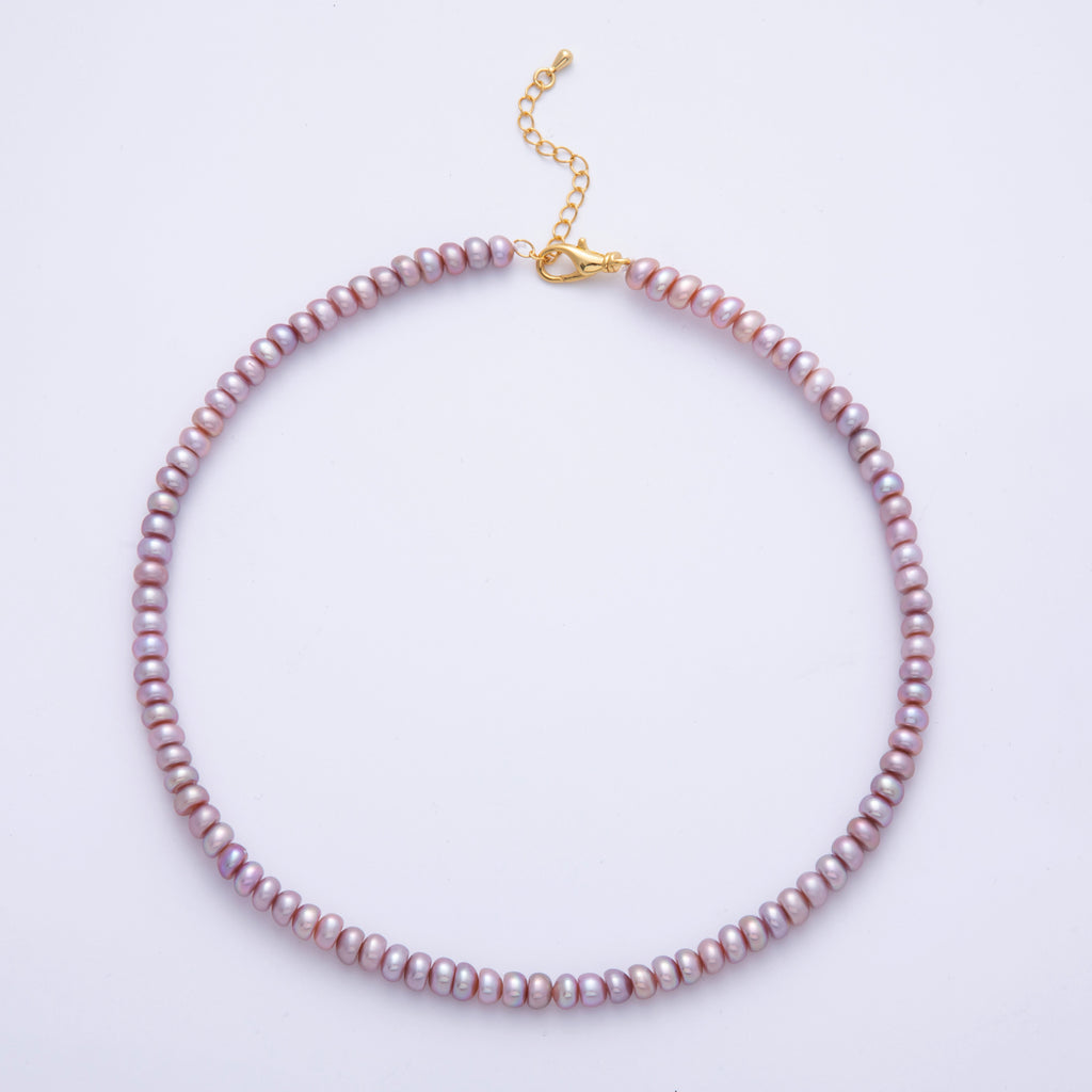 18K Gold Filled 6mm Purple Natural Shell Pearl Rondelle Bead 15.5 Inch Choker Necklace | WA-4056