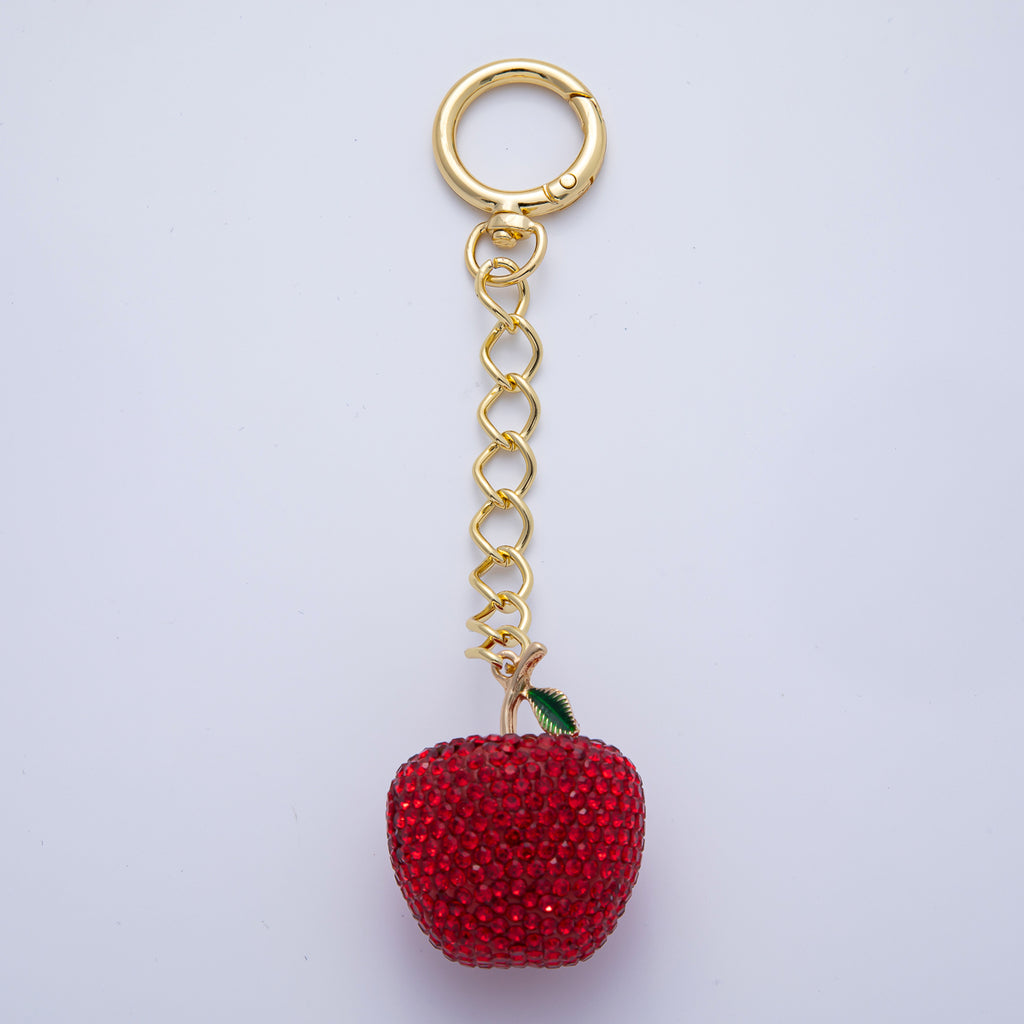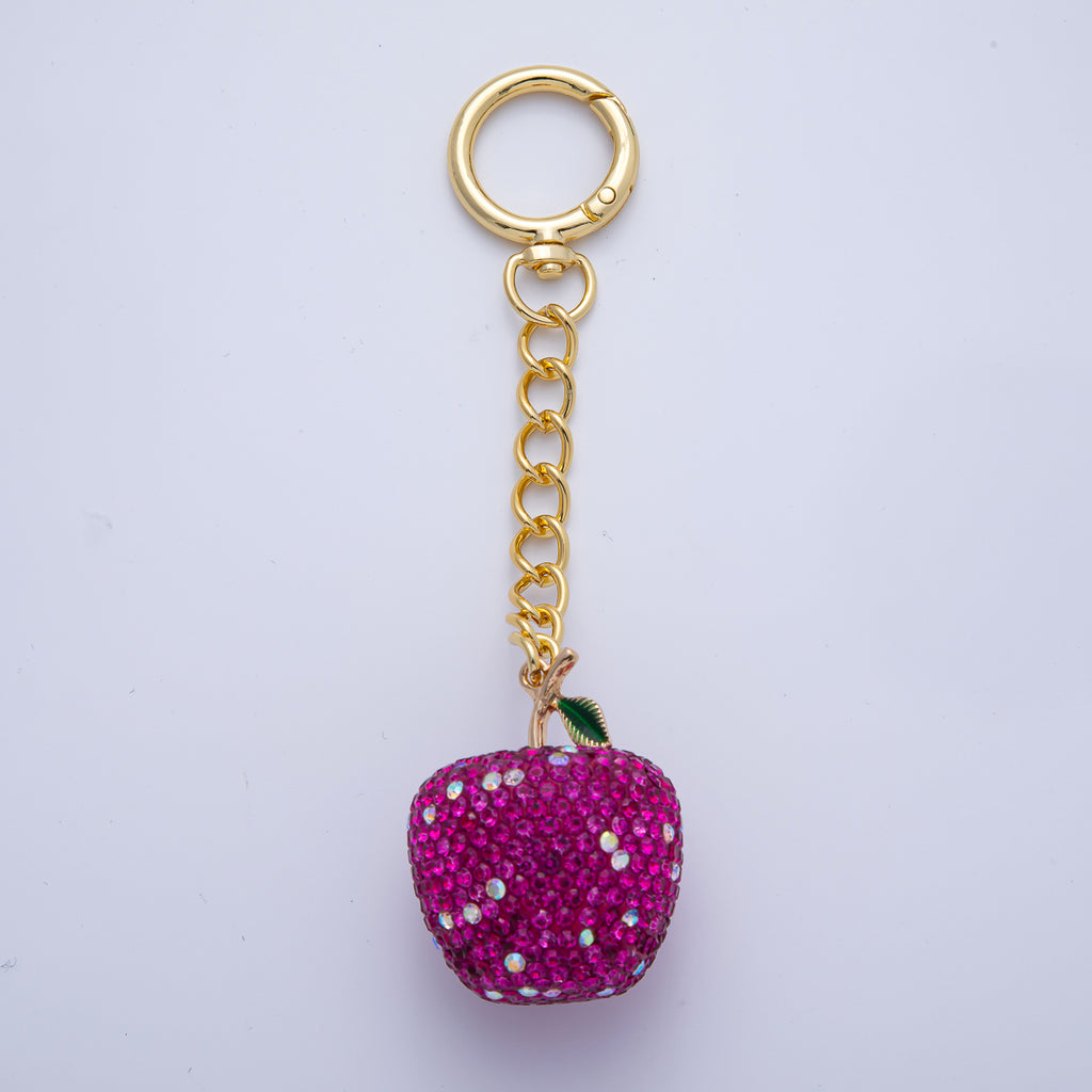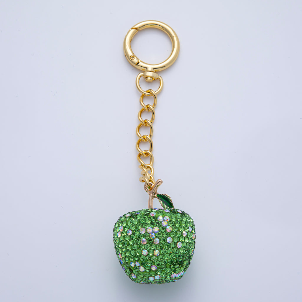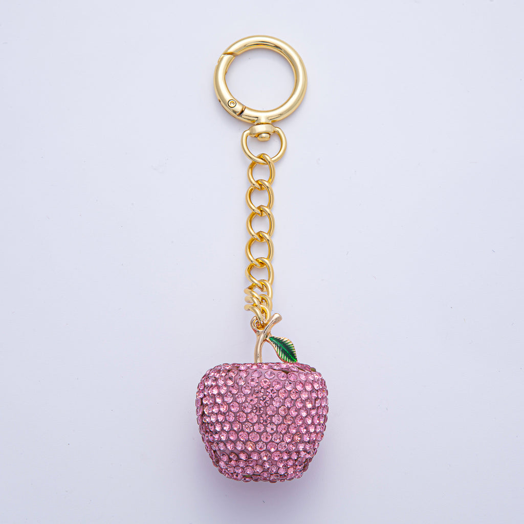 18K Gold Filled Apple Bedazzled Bag Charm Keychain Push Gate Accessories | WB-00268 ~ WB-00272