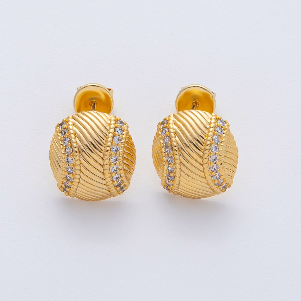 18K Gold Filled Baseball Sports Micro Paved CZ Stud Earrings | AD1631