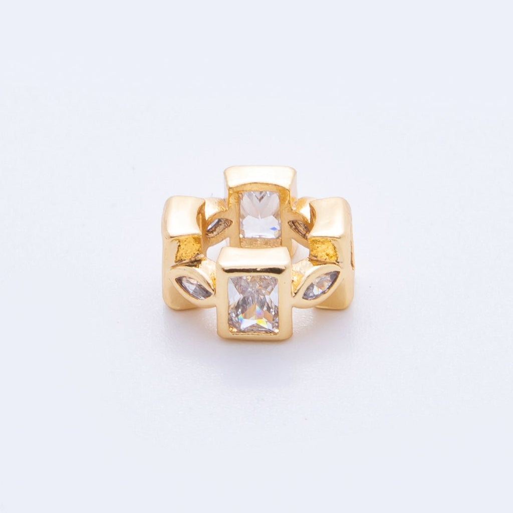 18K Gold Filled Clear CZ Baguette Marquise Geometric Bead Spacer | AF1043