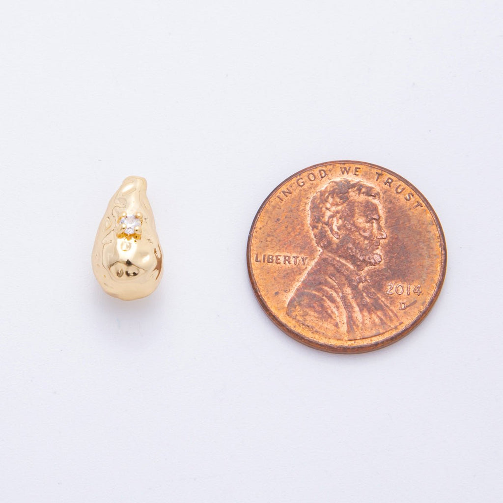 18K Gold Filled 12mm Clear CZ Molten Gold Teardrop Charm | AF1025