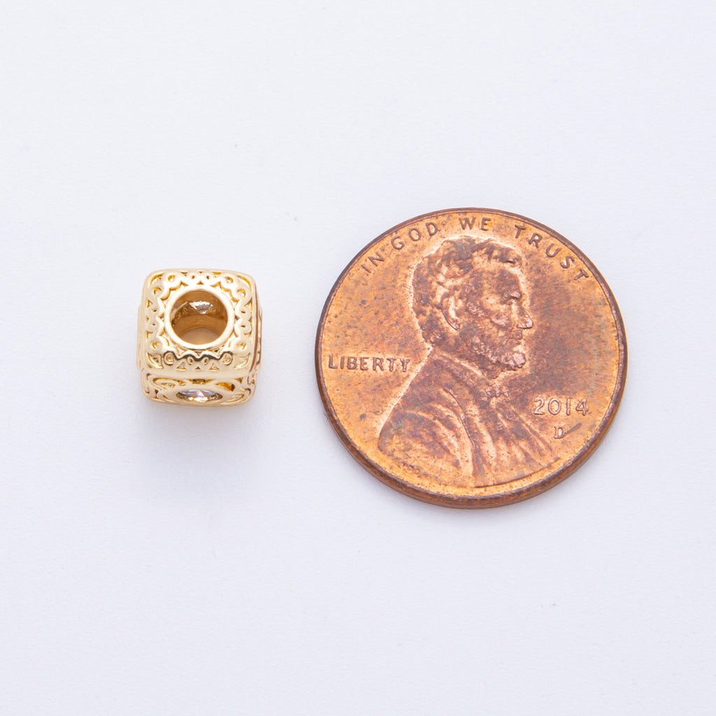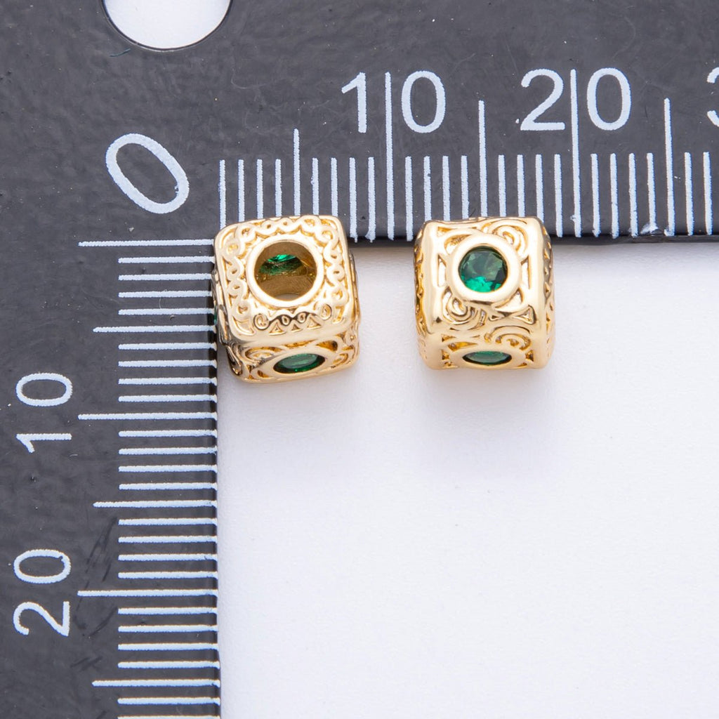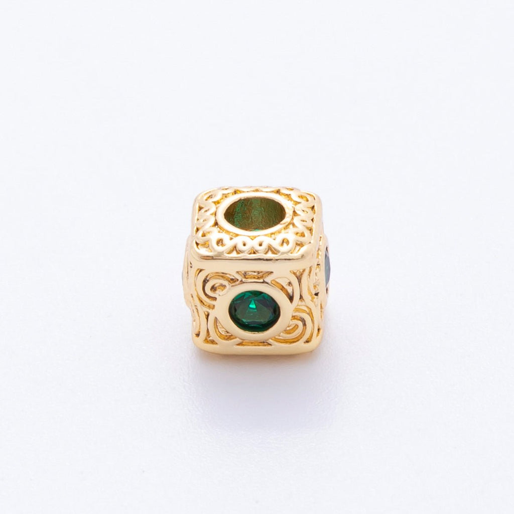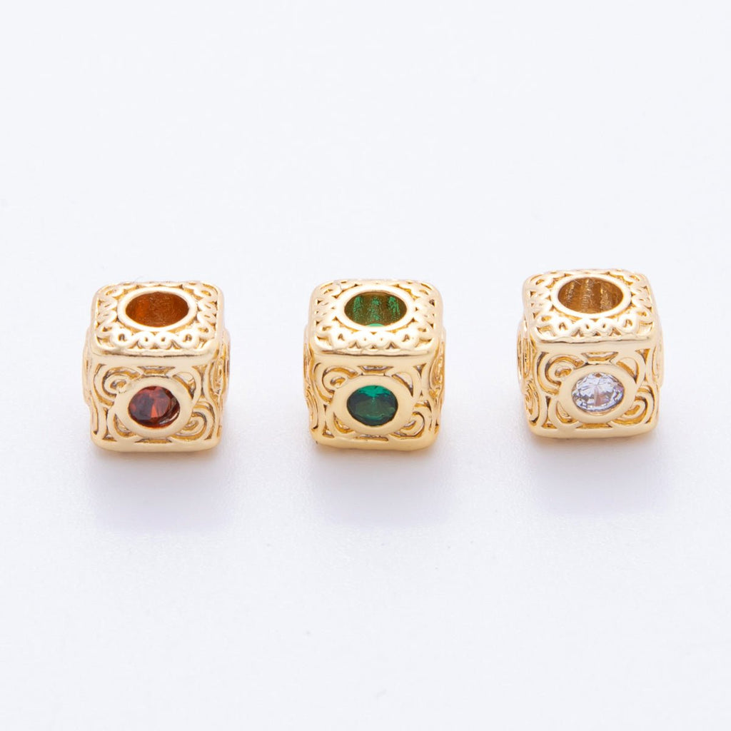 18K Gold Filled 7.5mm Clear, Green, Fuchsia CZ Artisan Geometric Square Bead Spacer | AF1020 AF1021 AF1054