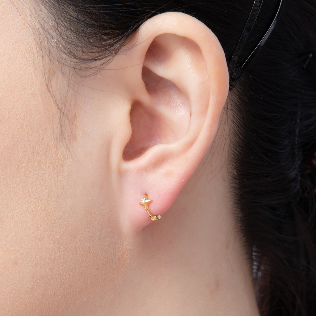 18K Gold Filled 10mm Clear CZ Celestial North Star Cartilage Huggie Earrings | Q167