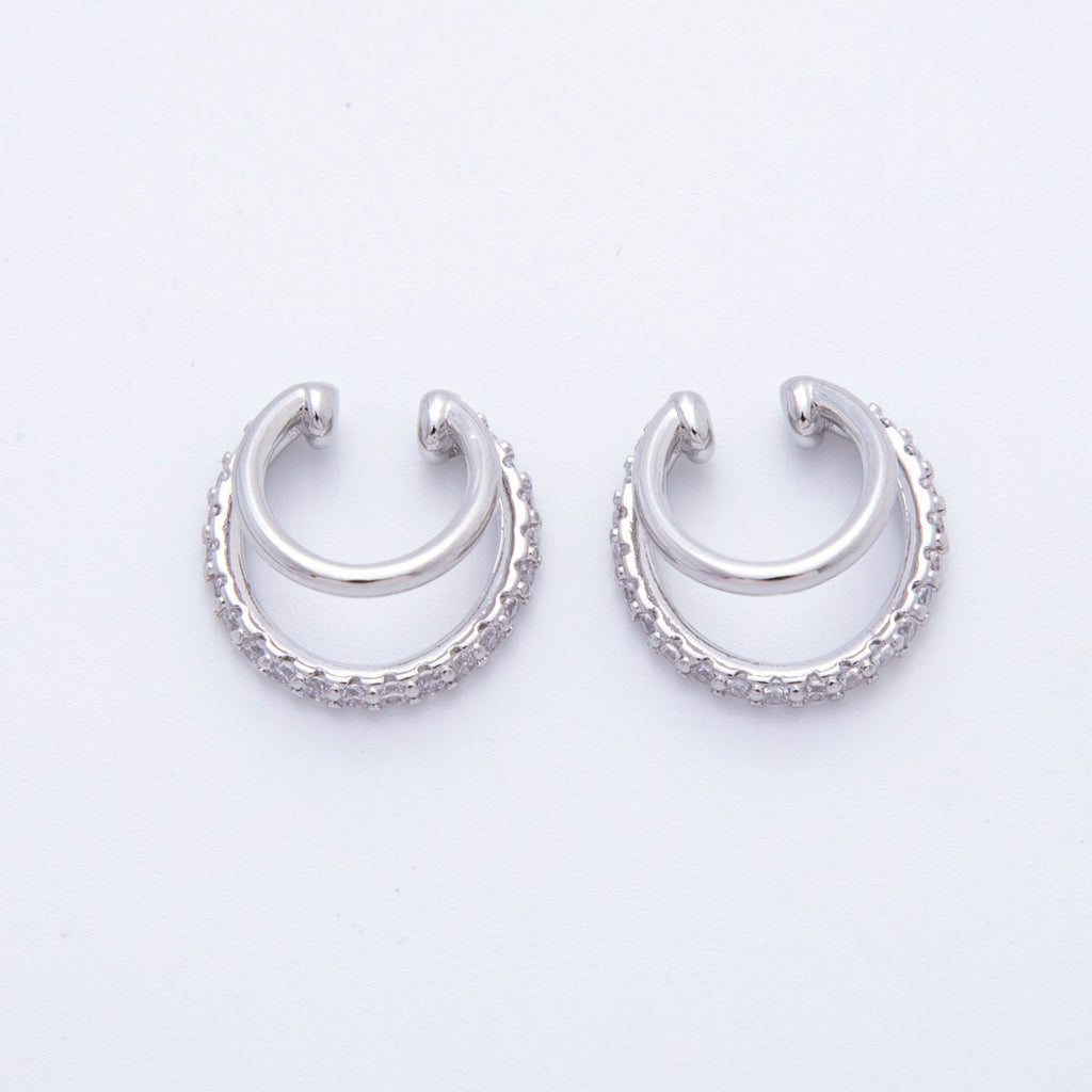 18K Gold Filled Micro Paved CZ Double Band Ear Cuff Earrings in Gold & Silver | AI262