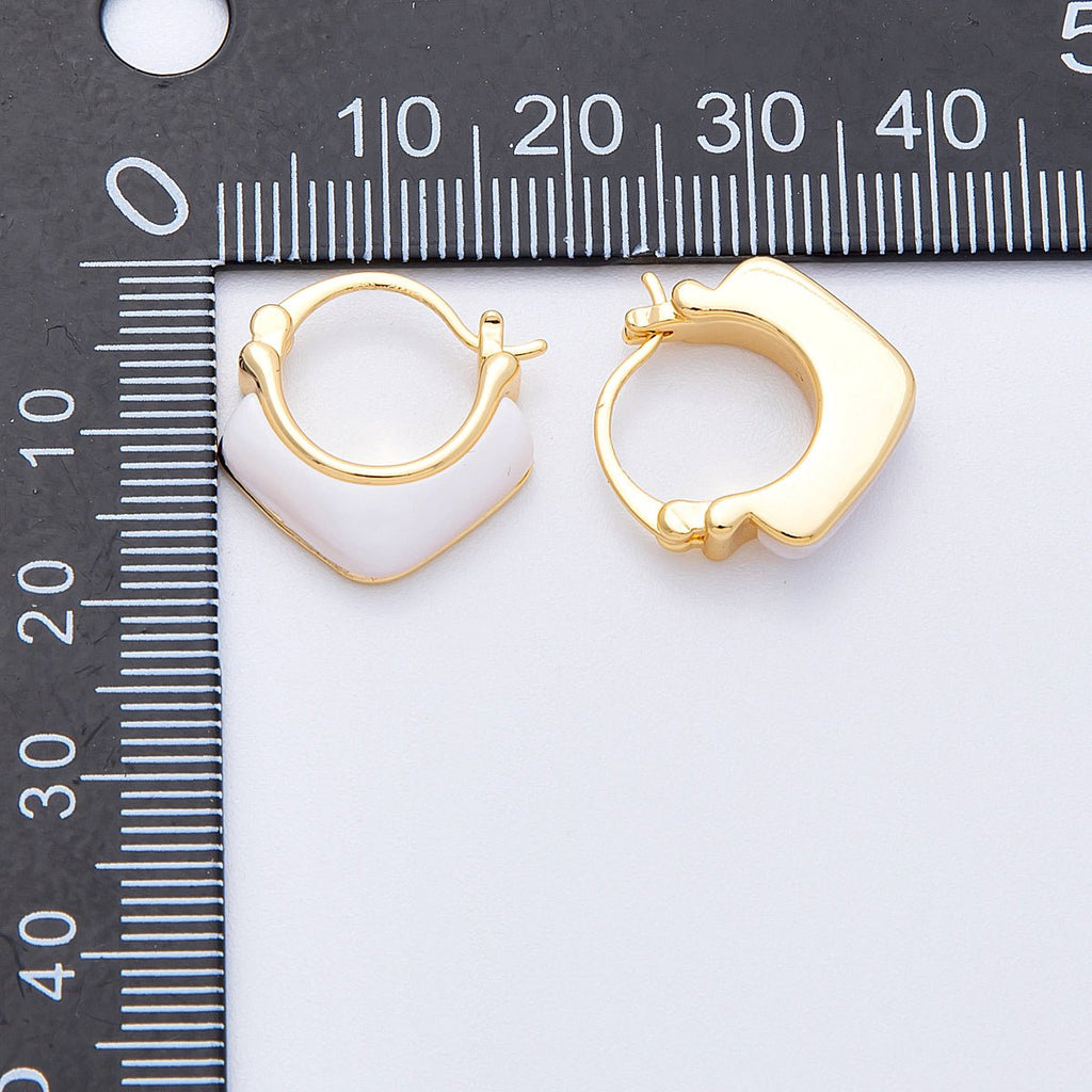 18K Gold Filled 18mm Cream White Enamel V Rhombus Latch Hoop Earrings | Earrings-00297