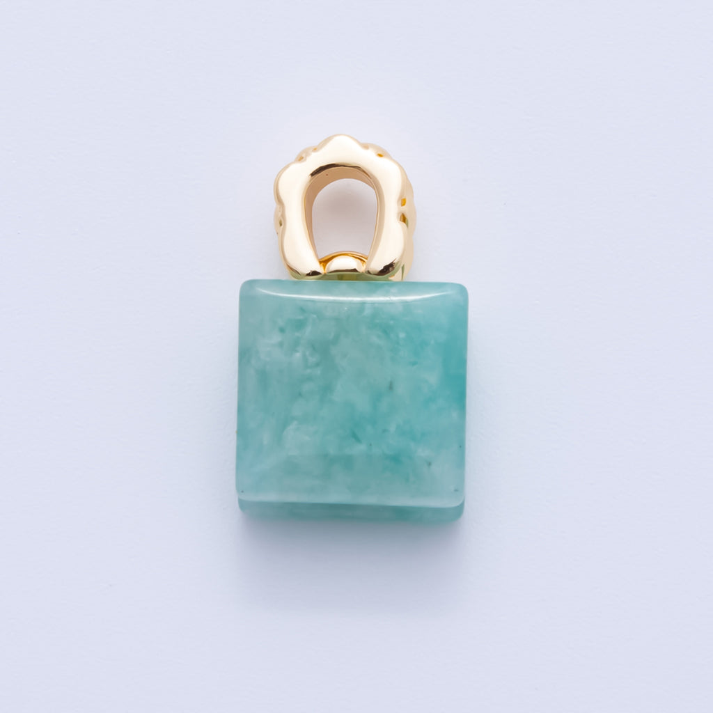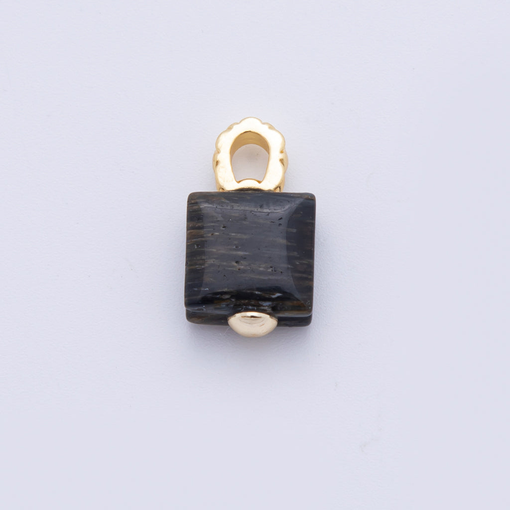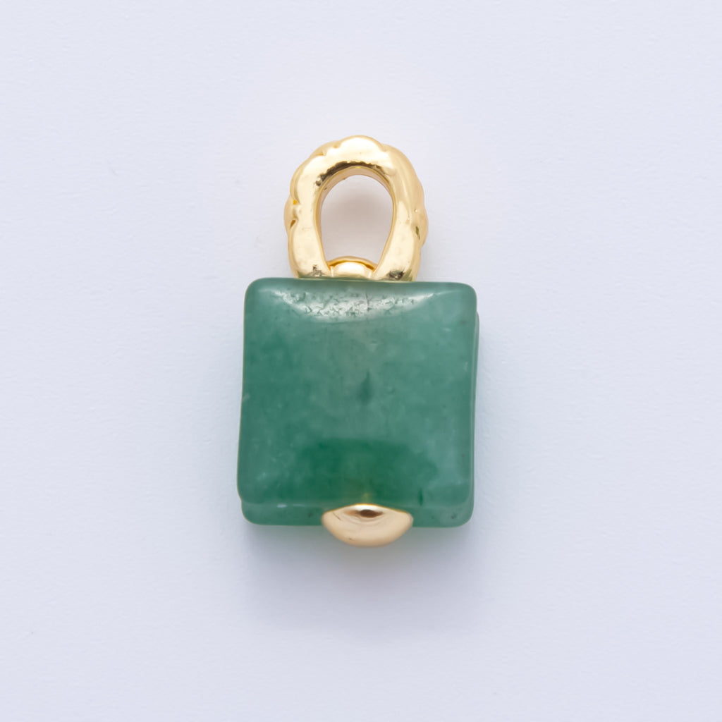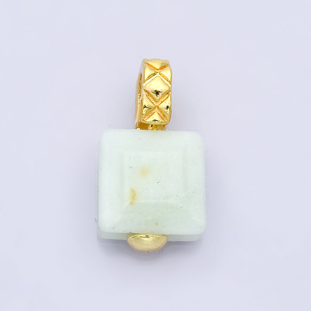 18K Gold Filled Natural Gemstone Square Quilted Drop Charm | AH819 - AH824