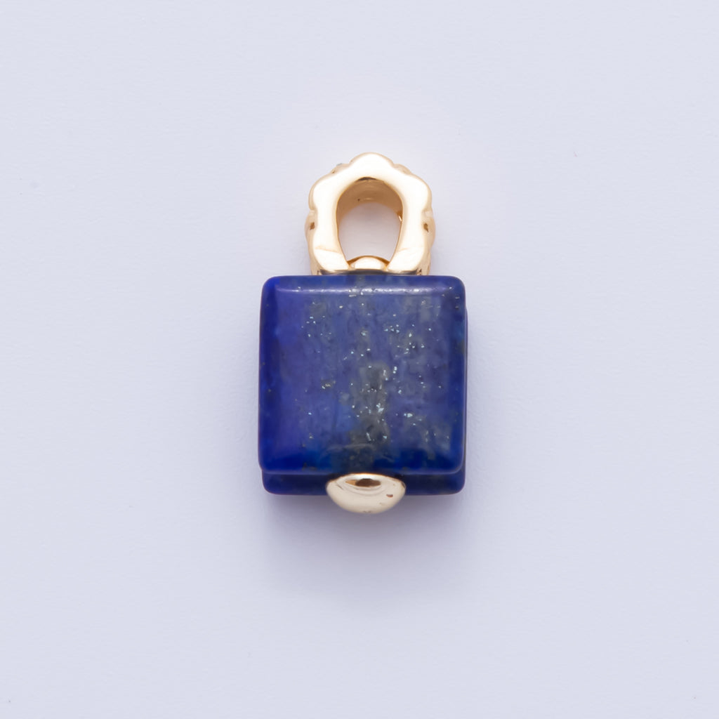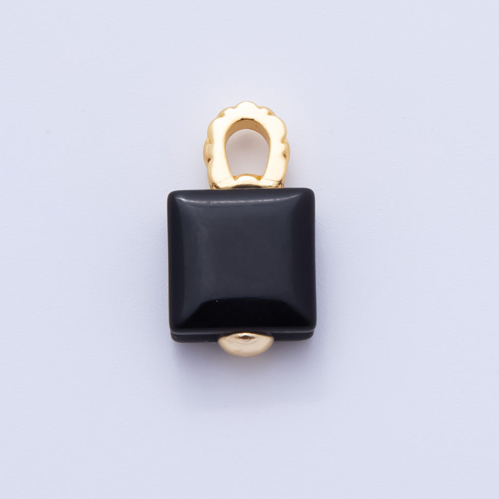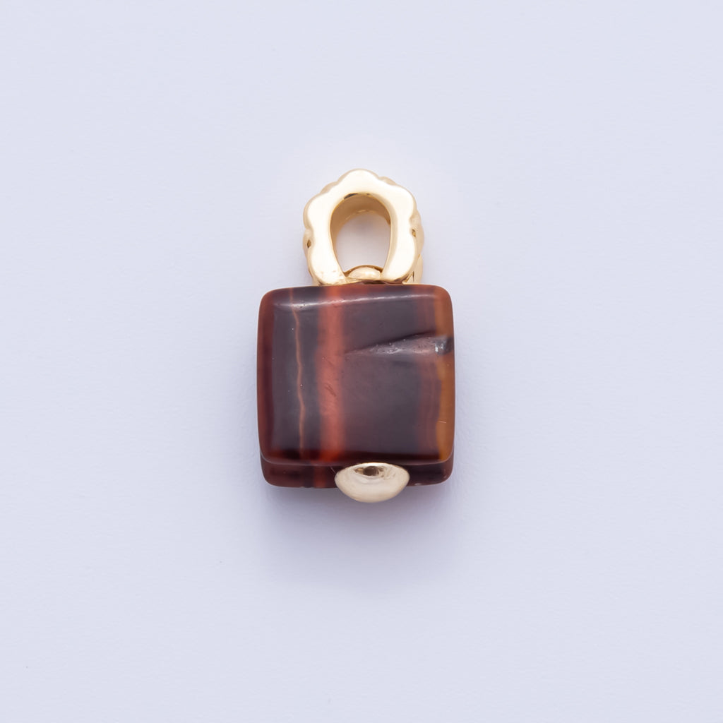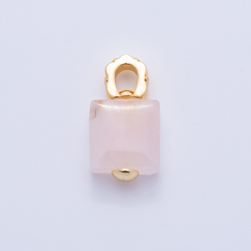 18K Gold Filled Natural Gemstone Square Quilted Drop Charm | AH819 - AH824