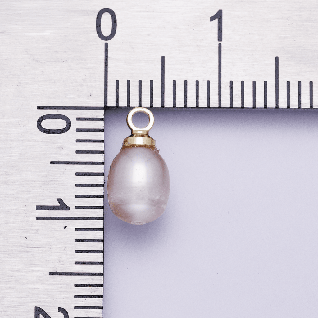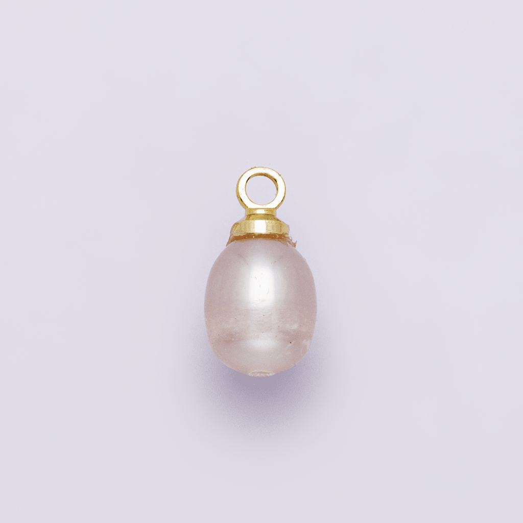 18K Gold Filled 11mm Pink Ringed Freshwater Pearl Oval Charm | P1956