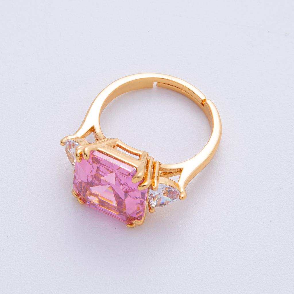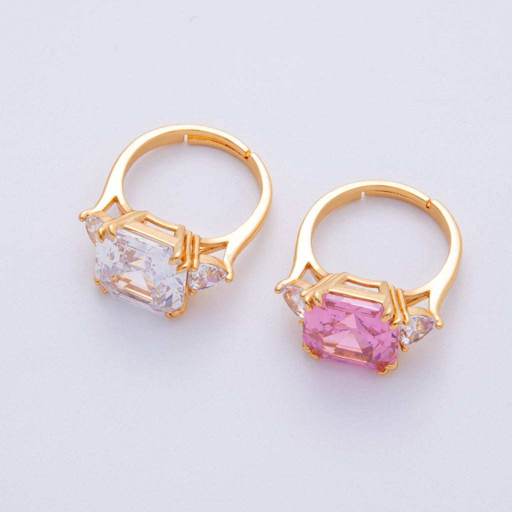 18K Gold Filled Pink, White CZ Square Geometric Butterfly Mariposa Wings Adjustable Ring | O809