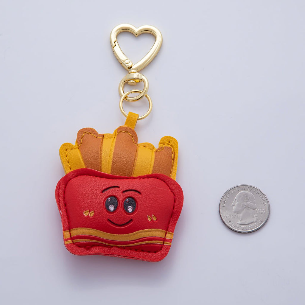 18K Gold Filled Potato French Fries Fast Food Leather Bag Charm Keychain Heart Key Ring Accessories | WB-00229
