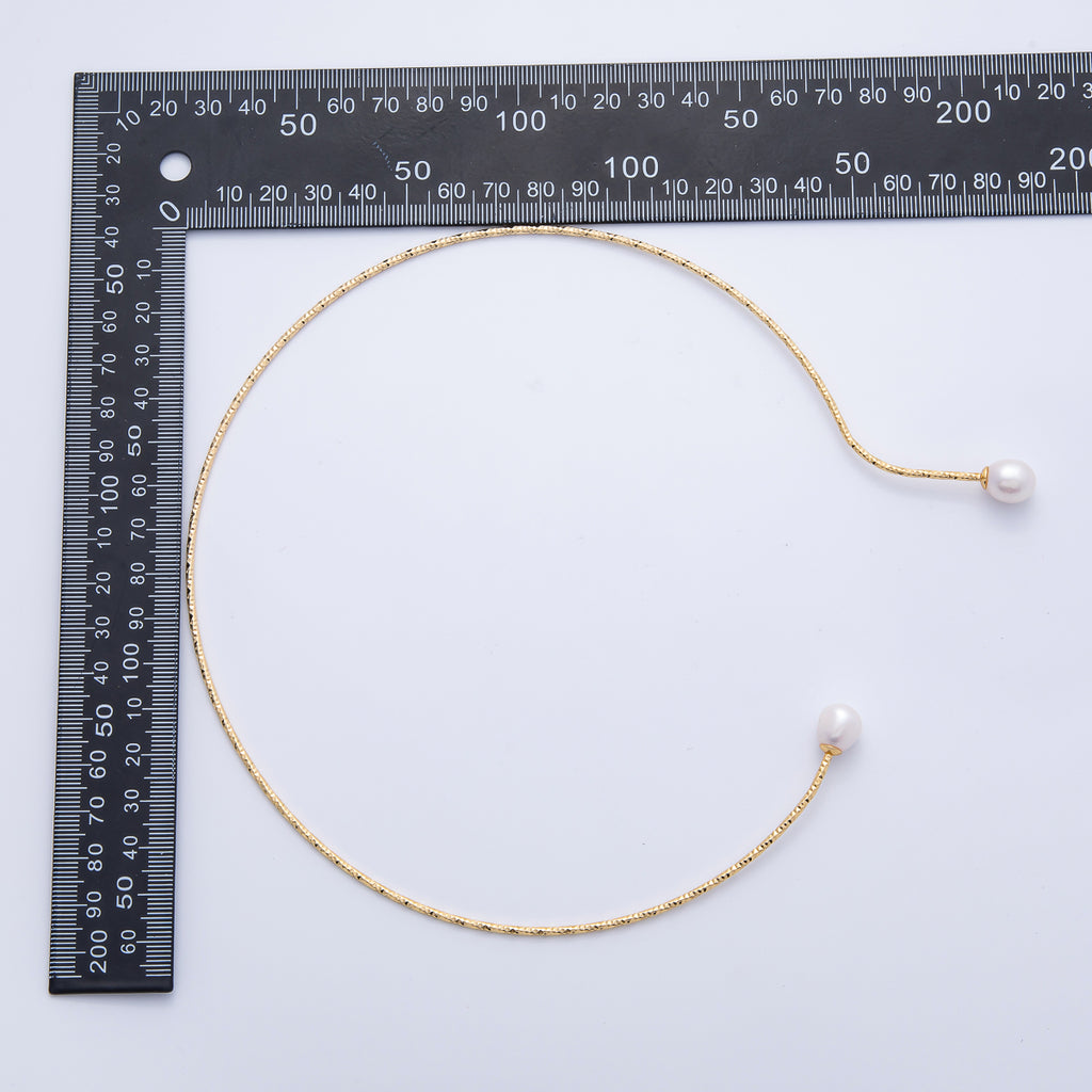 18K Gold Filled Shell Pearl Drop Geometric Edged Collar Necklace | WA-3999