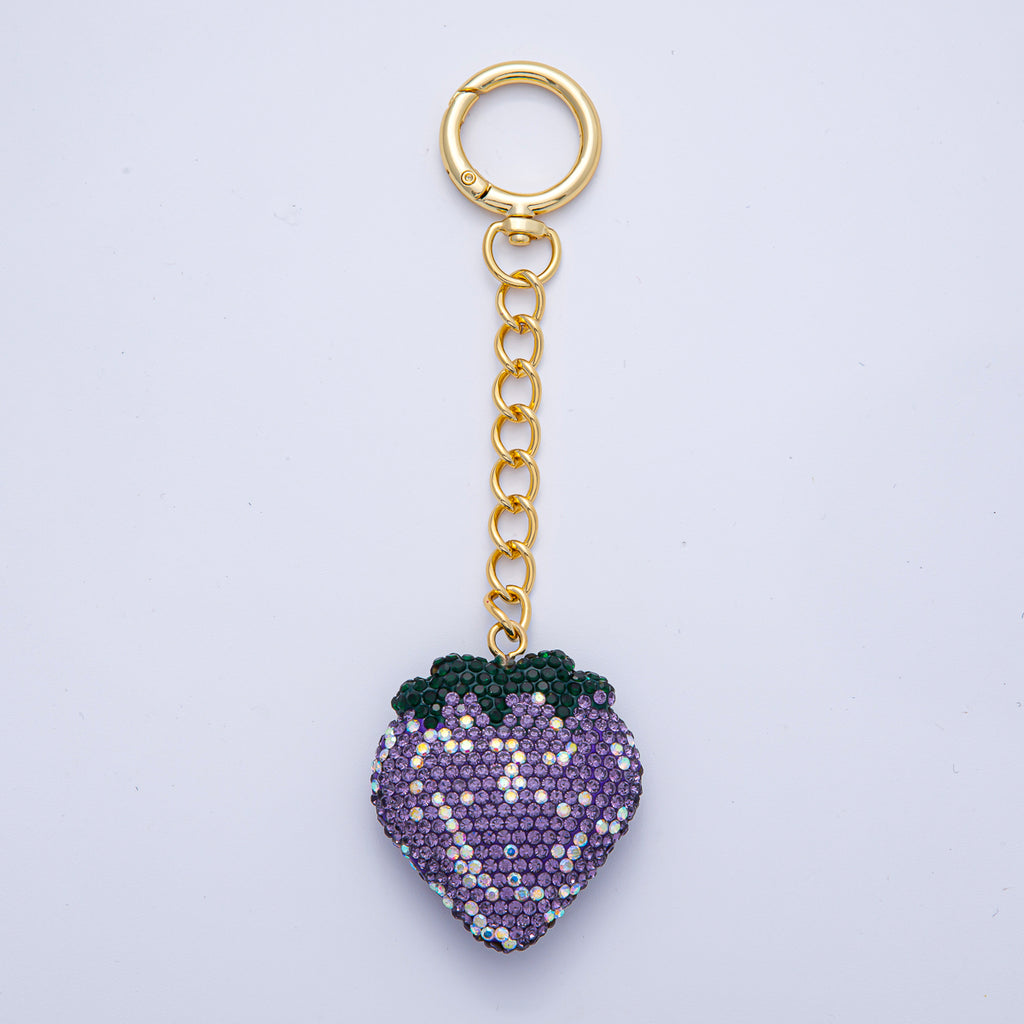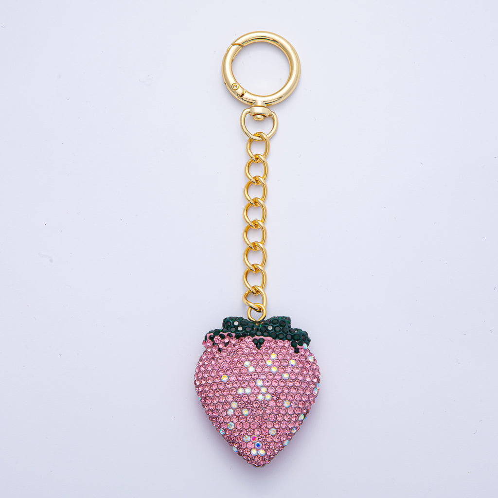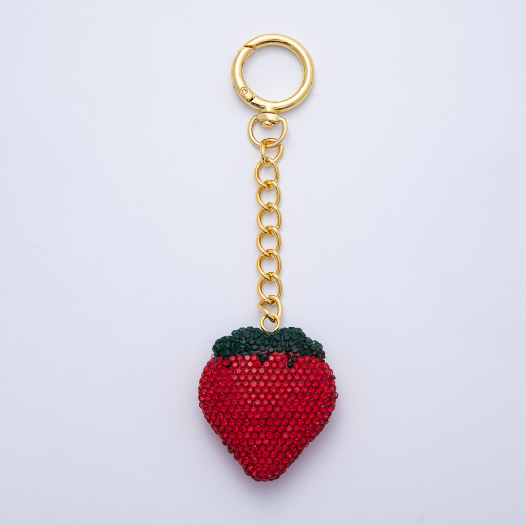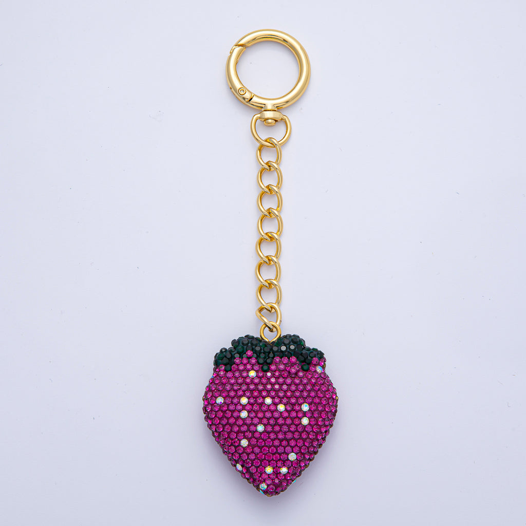18K Gold Filled Strawberry Bedazzled Bag Charm Keychain Push Gate Accessories | WB-00248 ~ WB-00253