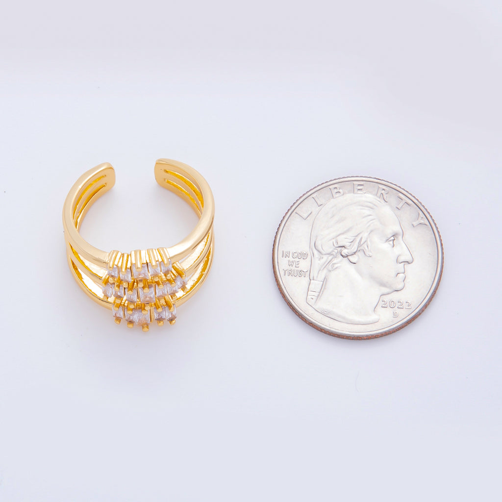 18K Gold Filled Triple-Layered Baguette CZ Crown Triple Band Open Ring | O639