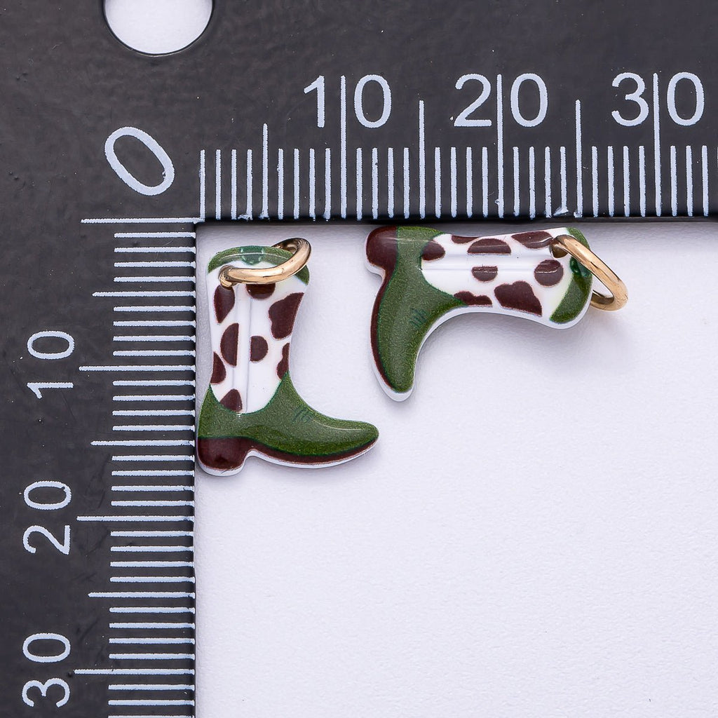 PVD Stainless Steel 15mm Cow-Print Cowboy Boots Enamel Charm | Charms-00507