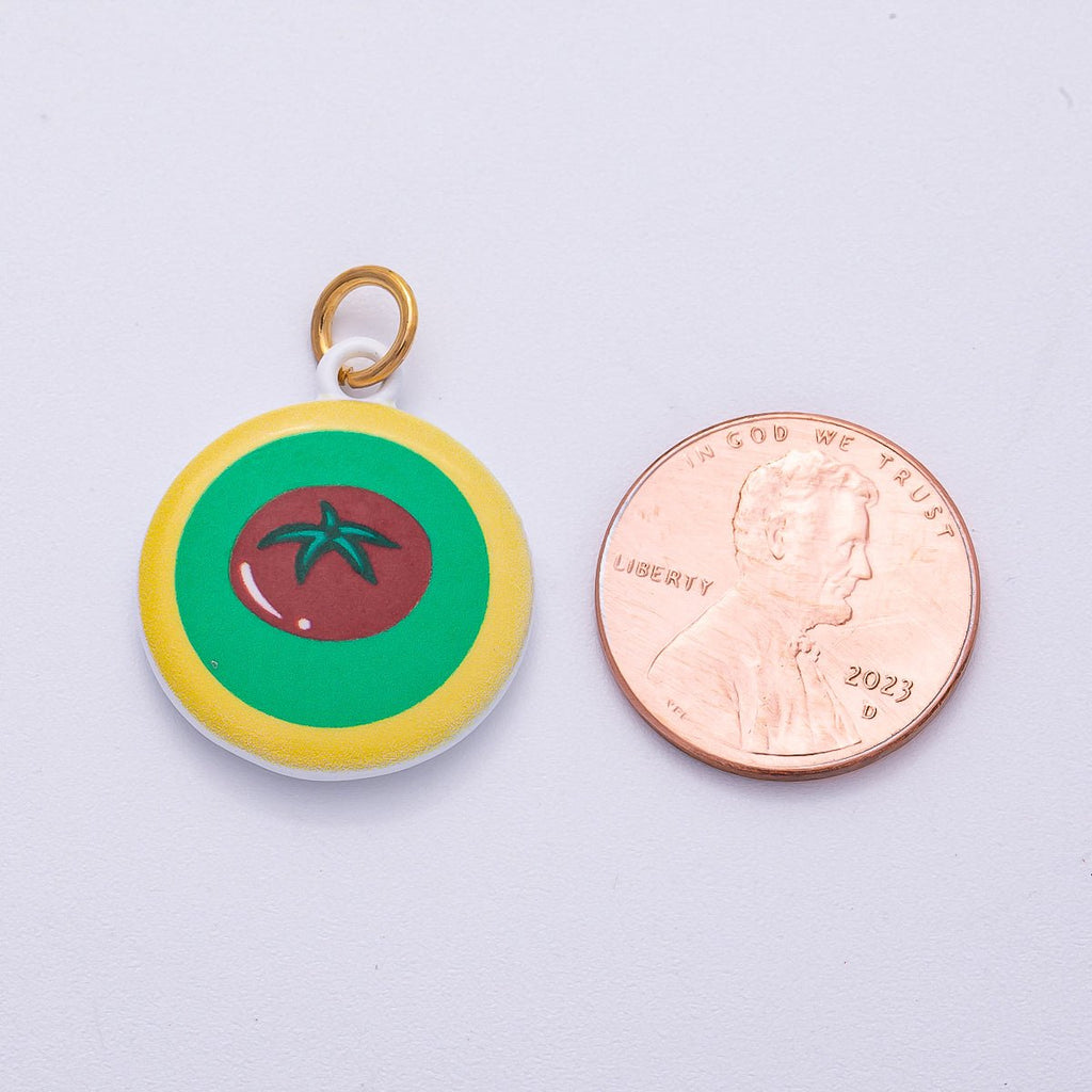 PVD Stainless Steel 23mm Tomato Multicolor Enamel Round Charm | Charms-00500
