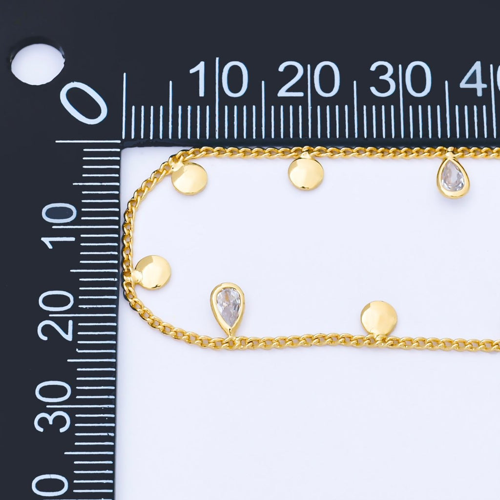 24K Gold Filled 1.4mm Cable Chain w. Teardrop CZ Drop Unfinished Chain by Yard | Roll-1681