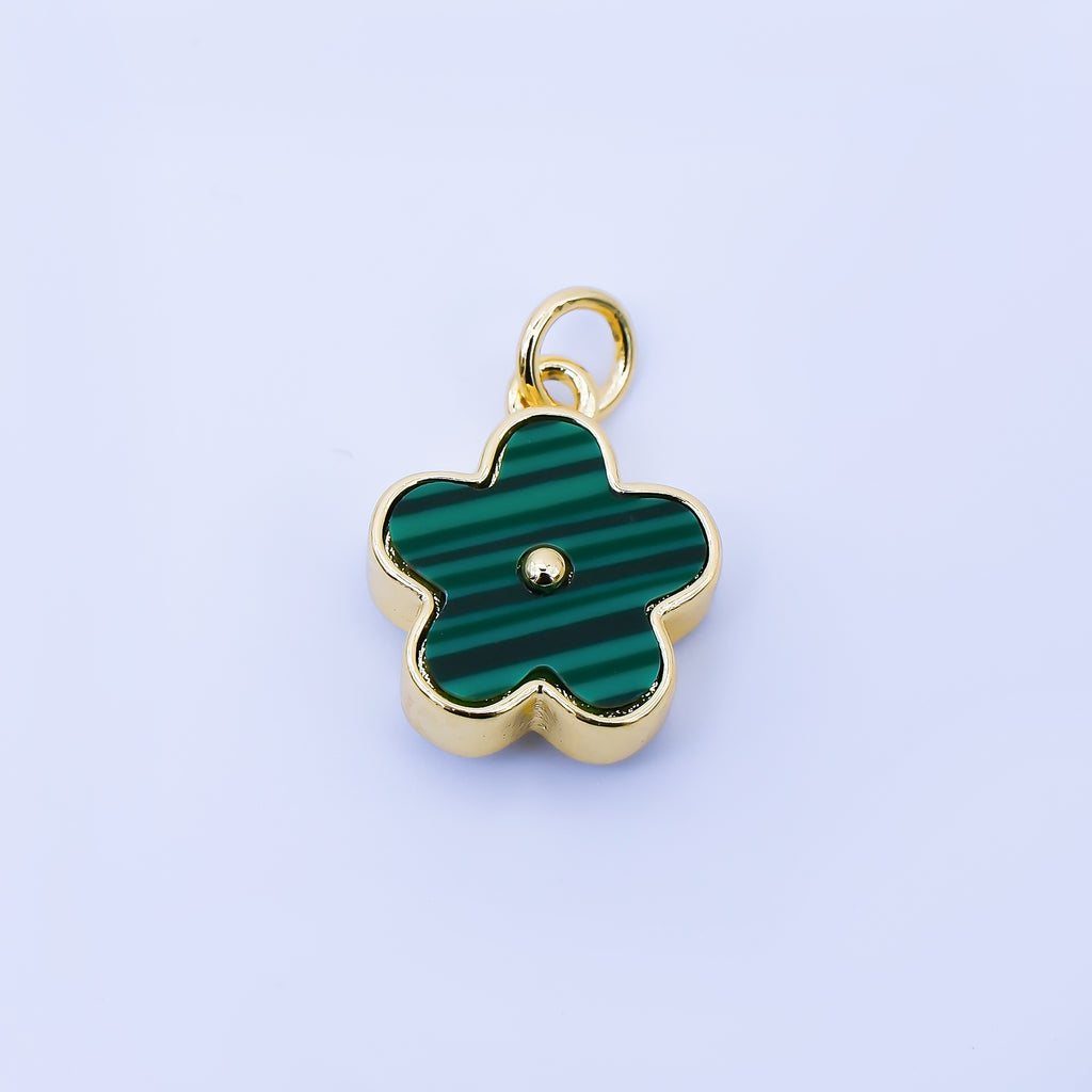 24K Gold Filled 12mm Double Sided Daisy Charm Malachite Flower Jewelry | AF1620