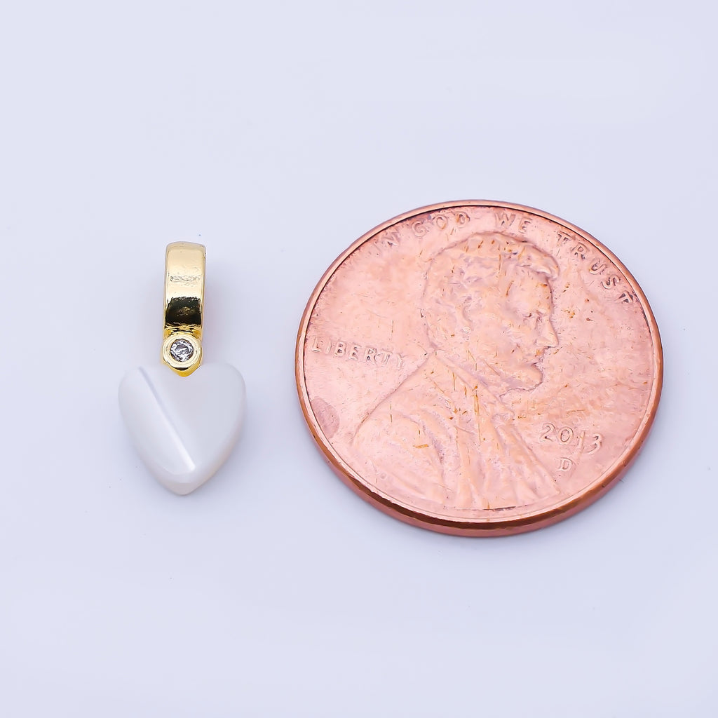 24K Gold Filled 13mm Heart Shell Pearl Clear CZ Bail Pendant | P1953