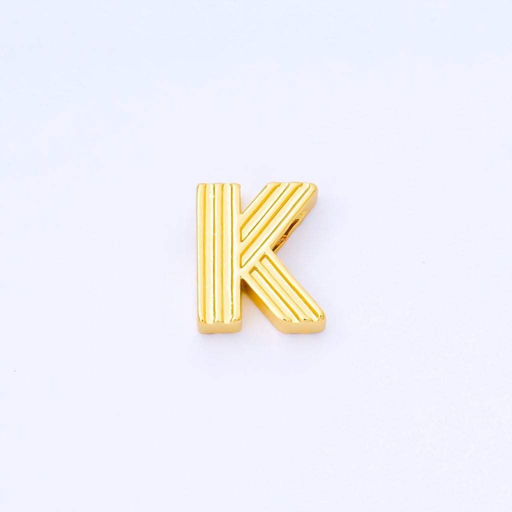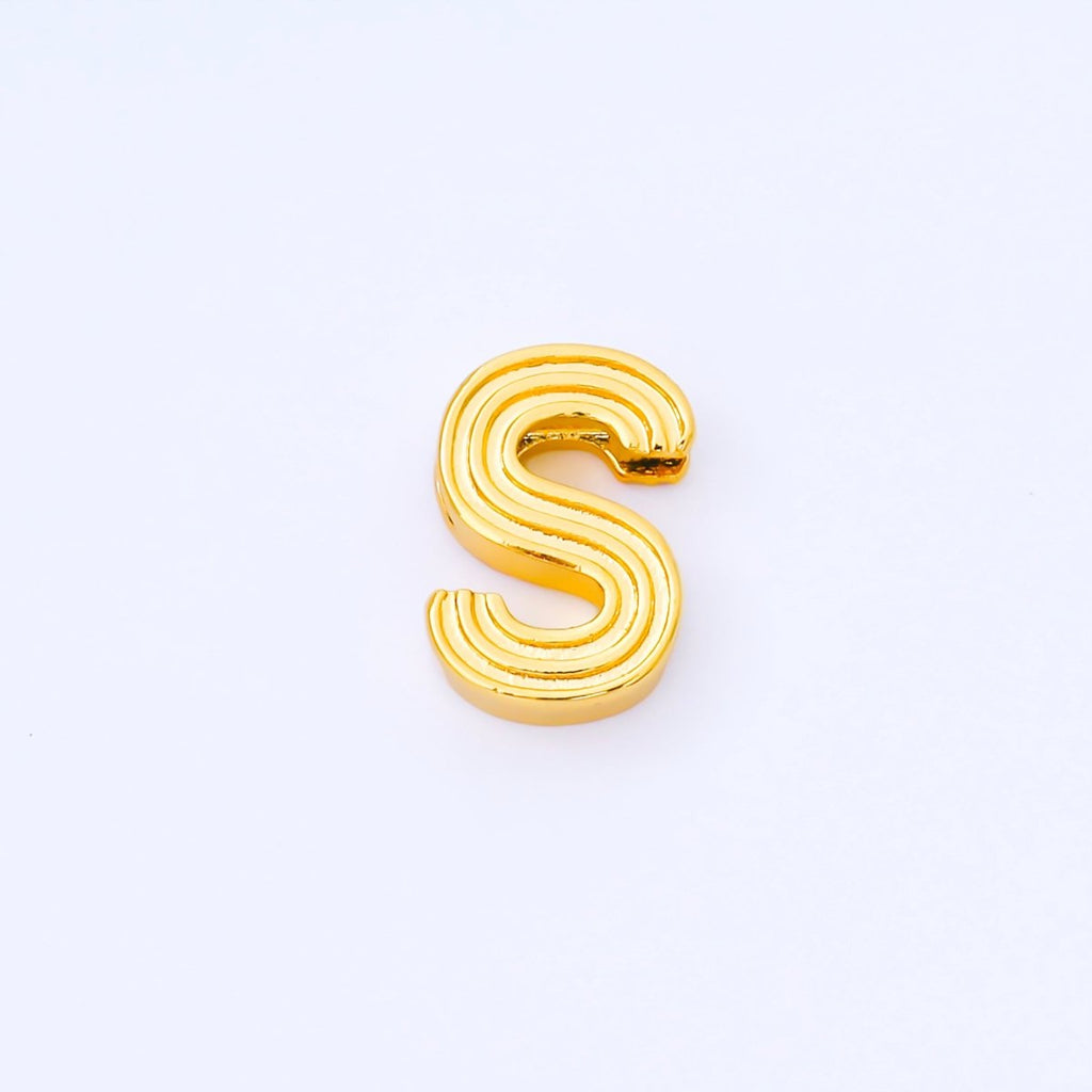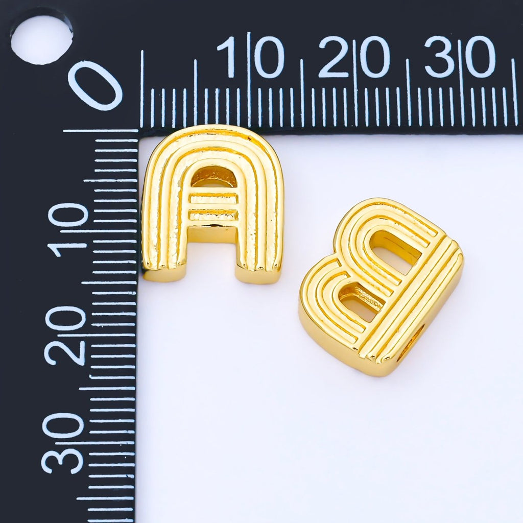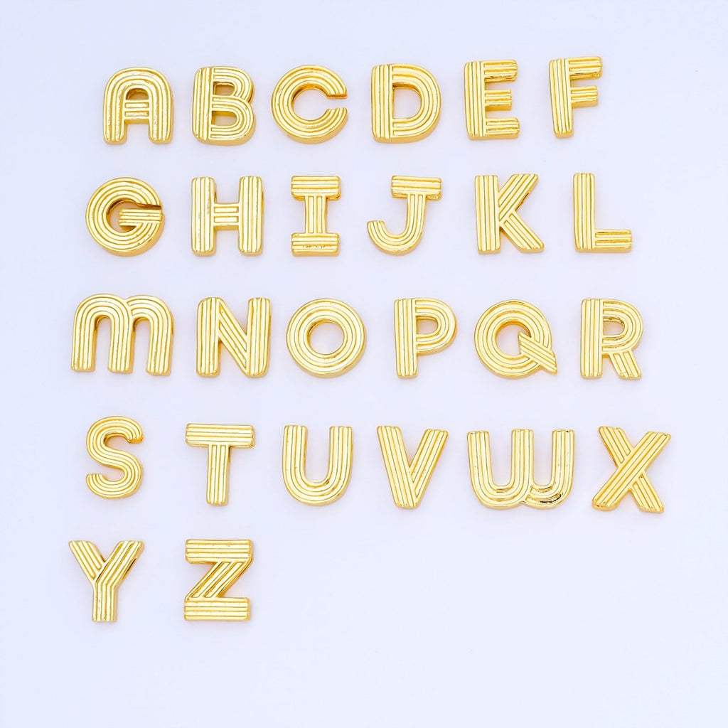24K Gold Filled 15mm Initial Letter Alphabet Groovy Initial Spacer Bead | AF066 - AF078