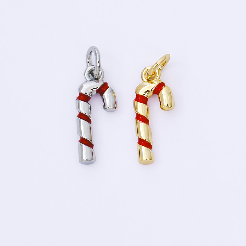 24K Gold Filled 15mm Red Enamel Candy Cane Christmas Charm | AF1297