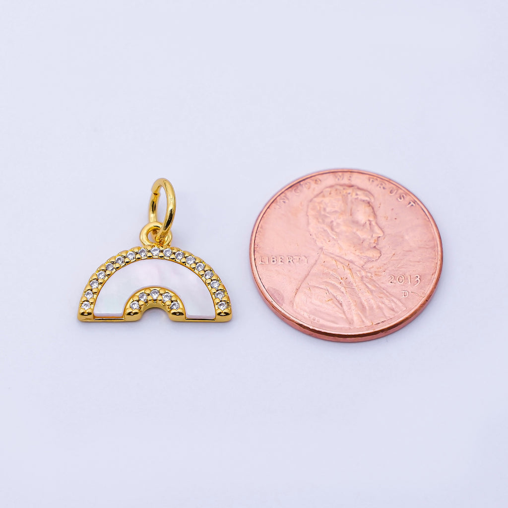 24K Gold Filled 15mm Shell Pearl Micro Paved CZ Rainbow Charm | C975