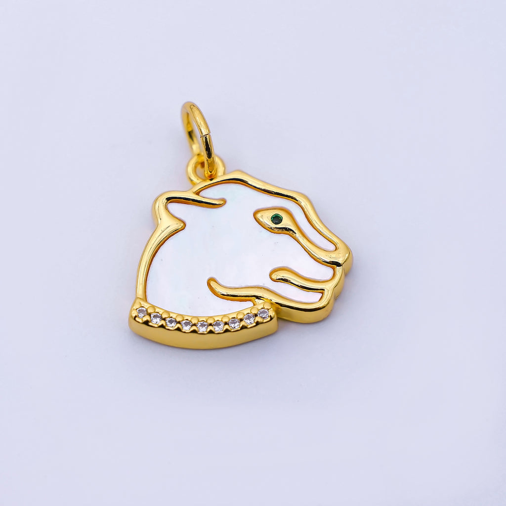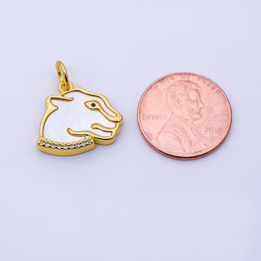 24K Gold Filled 16mm Shell Pearl CZ Micro Paved Panther Leopard Charm | C971
