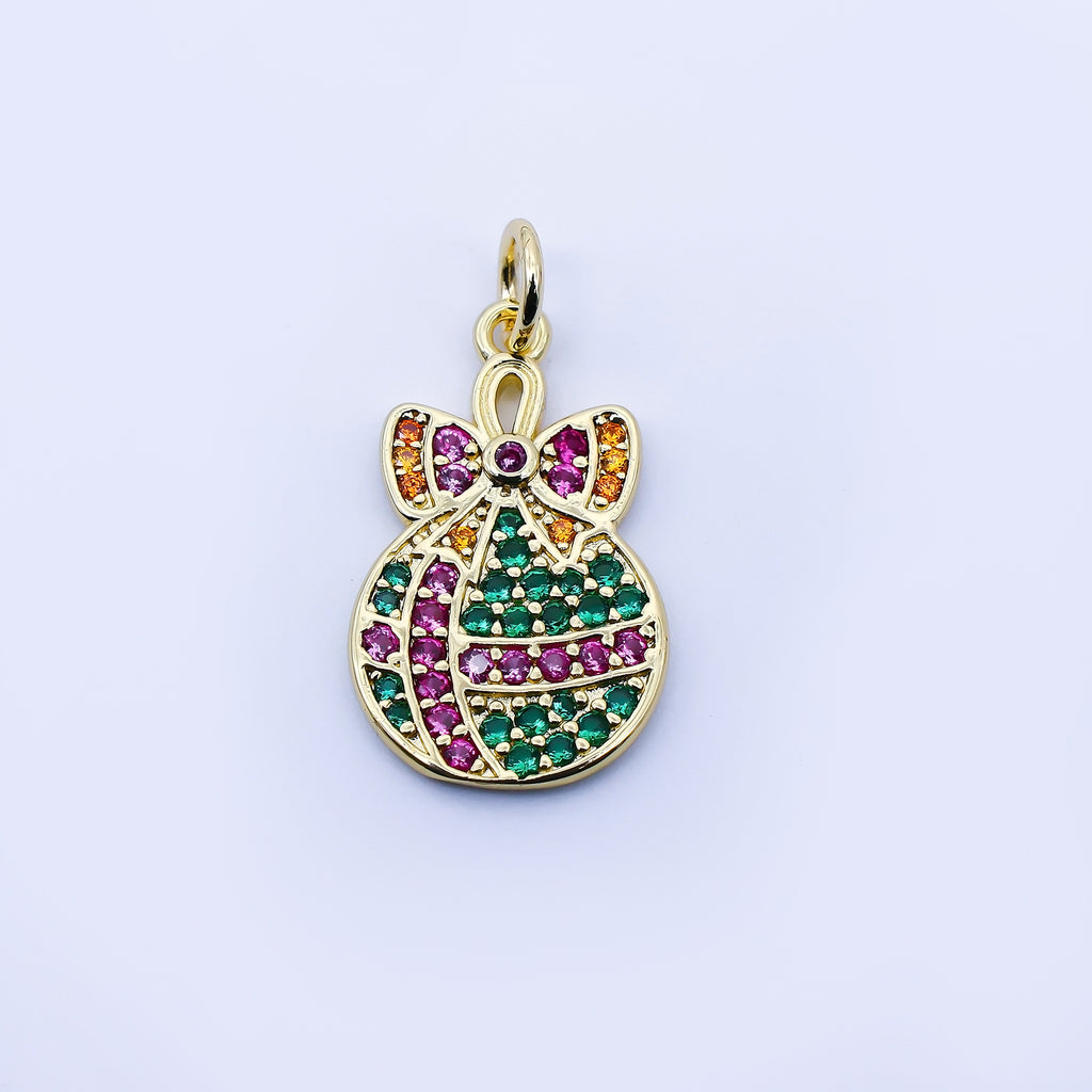 24K Gold Filled 19.5mm Multicolor Micro Paved CZ Christmas Ornaments Charm in Gold & Silver | E324