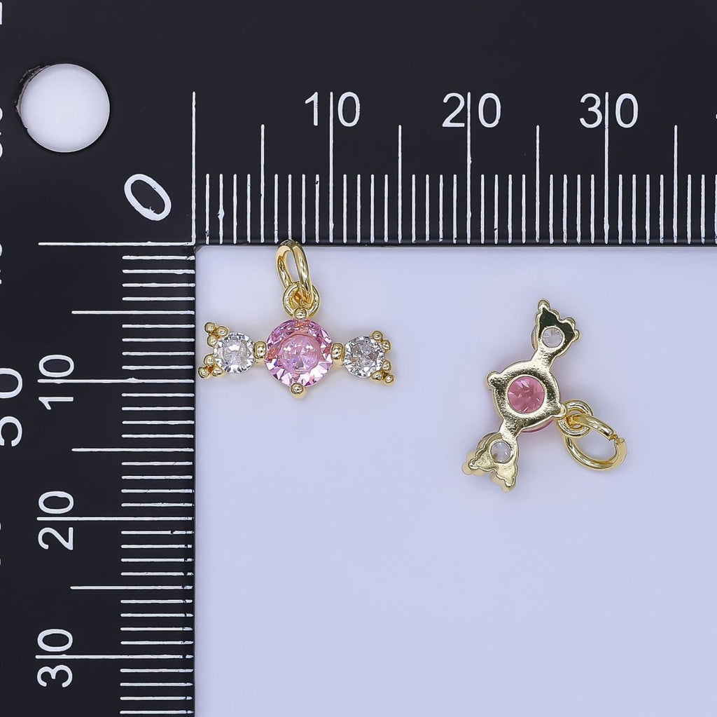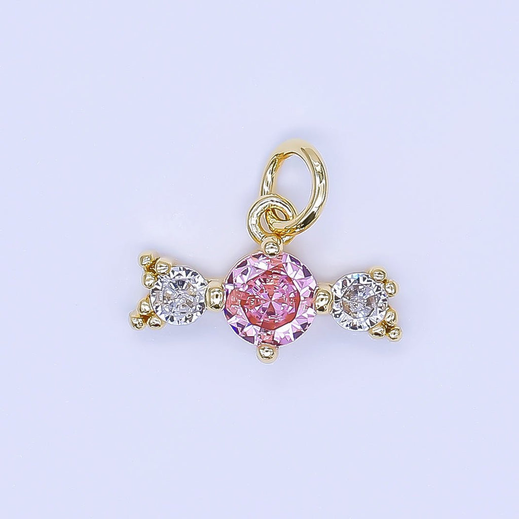 24K Gold Filled 20mm Clear, Pink Oval CZ Pink Sweet Candy Charm | AJ506