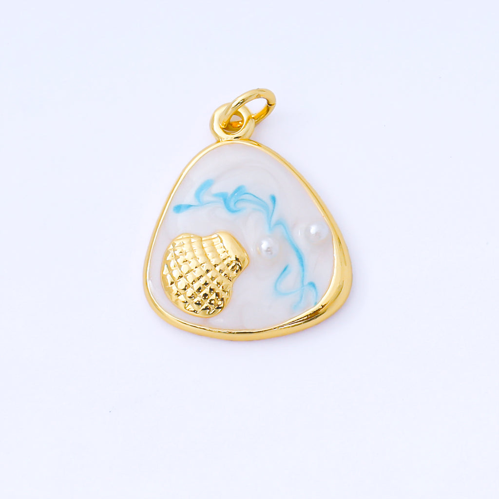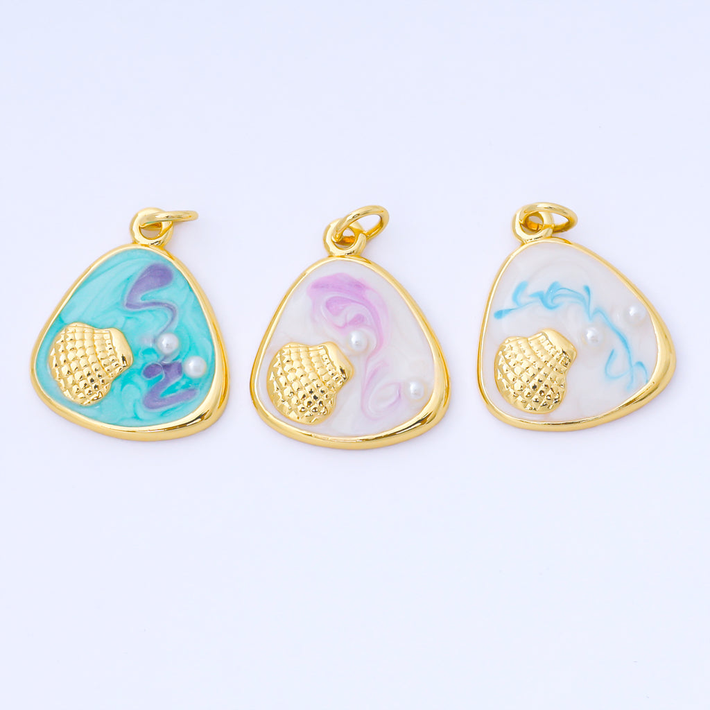 24K Gold Filled 20mm Handpainted Teal, White, Purple Enamel Clam Shell Medallion Charm | AF1544 AF1545
