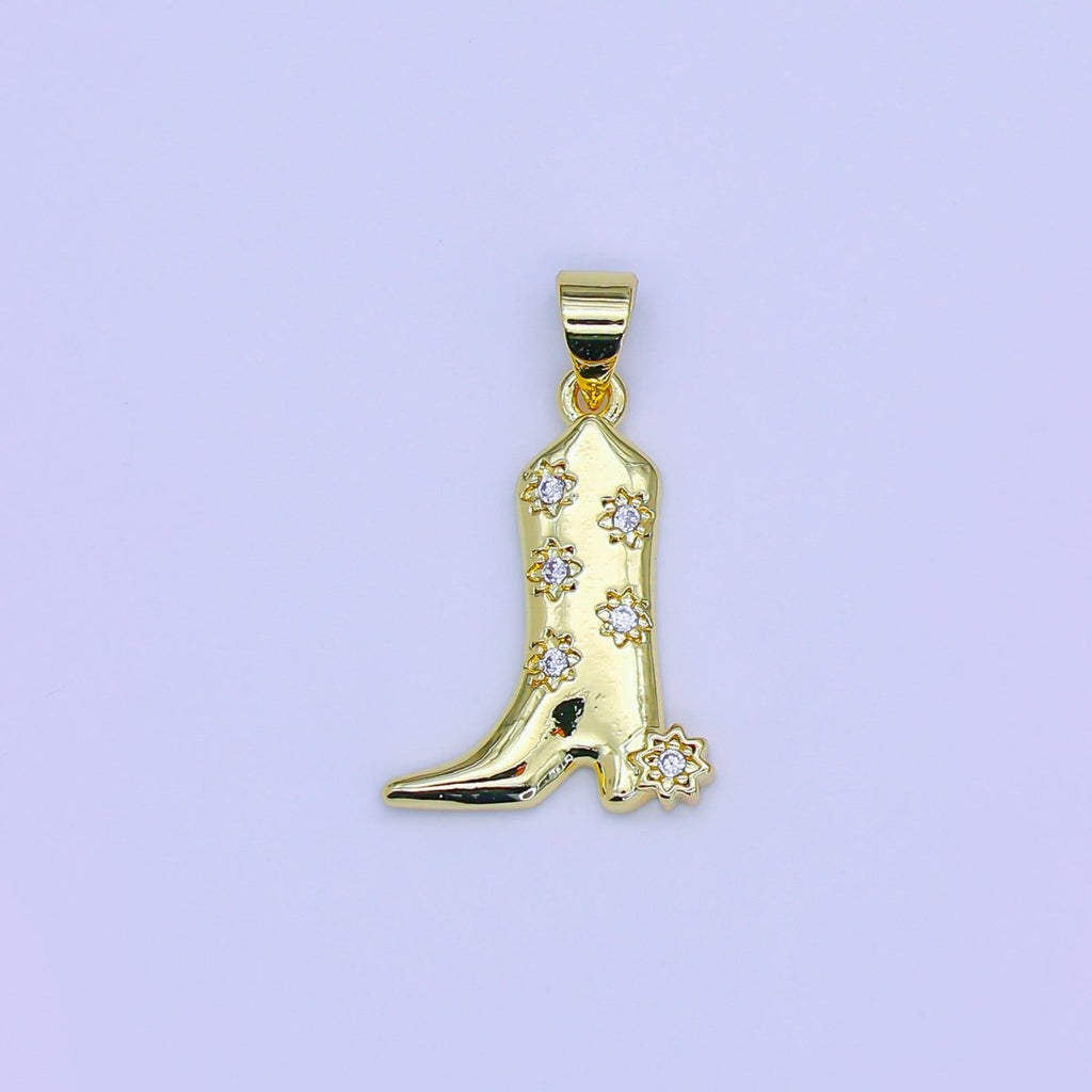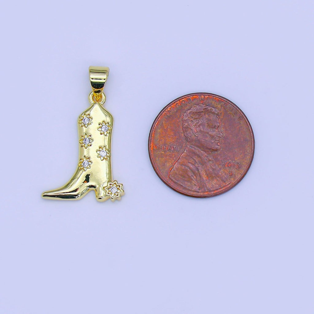 24K Gold Filled 20mm Micro Paved CZ Cowboy Boots Shoes Pendant | AH-470