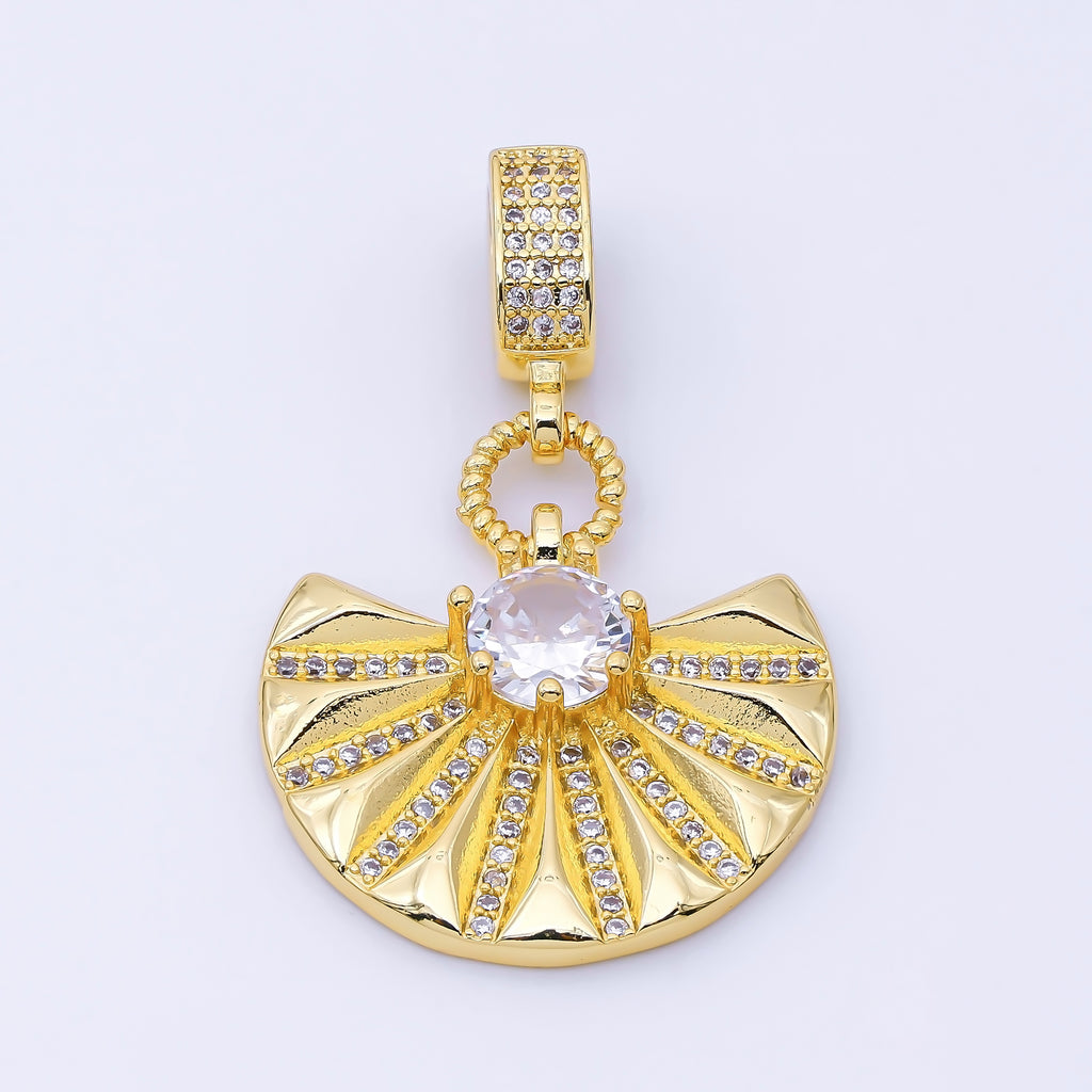 24K Gold Filled 22.5mm Fan Round Micro Paved CZ Rondelle Bail Drop Pendant | I003