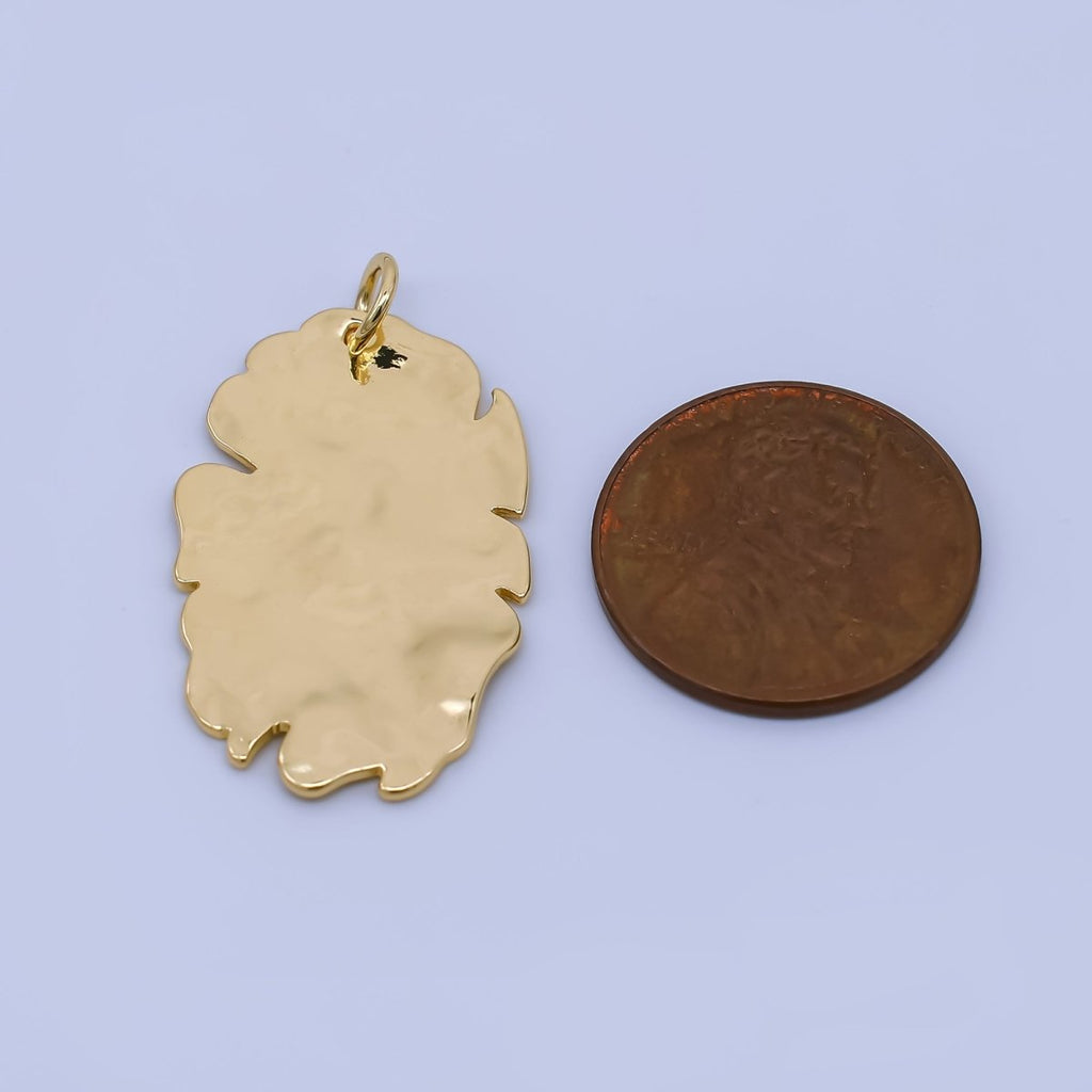 24K Gold Filled 28mm Polished Flat Dry Leaf Freeform Charm | AC1595