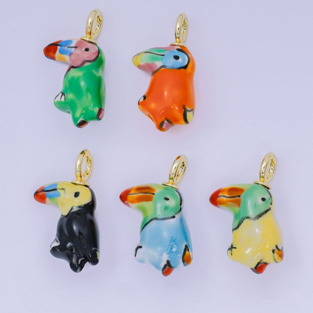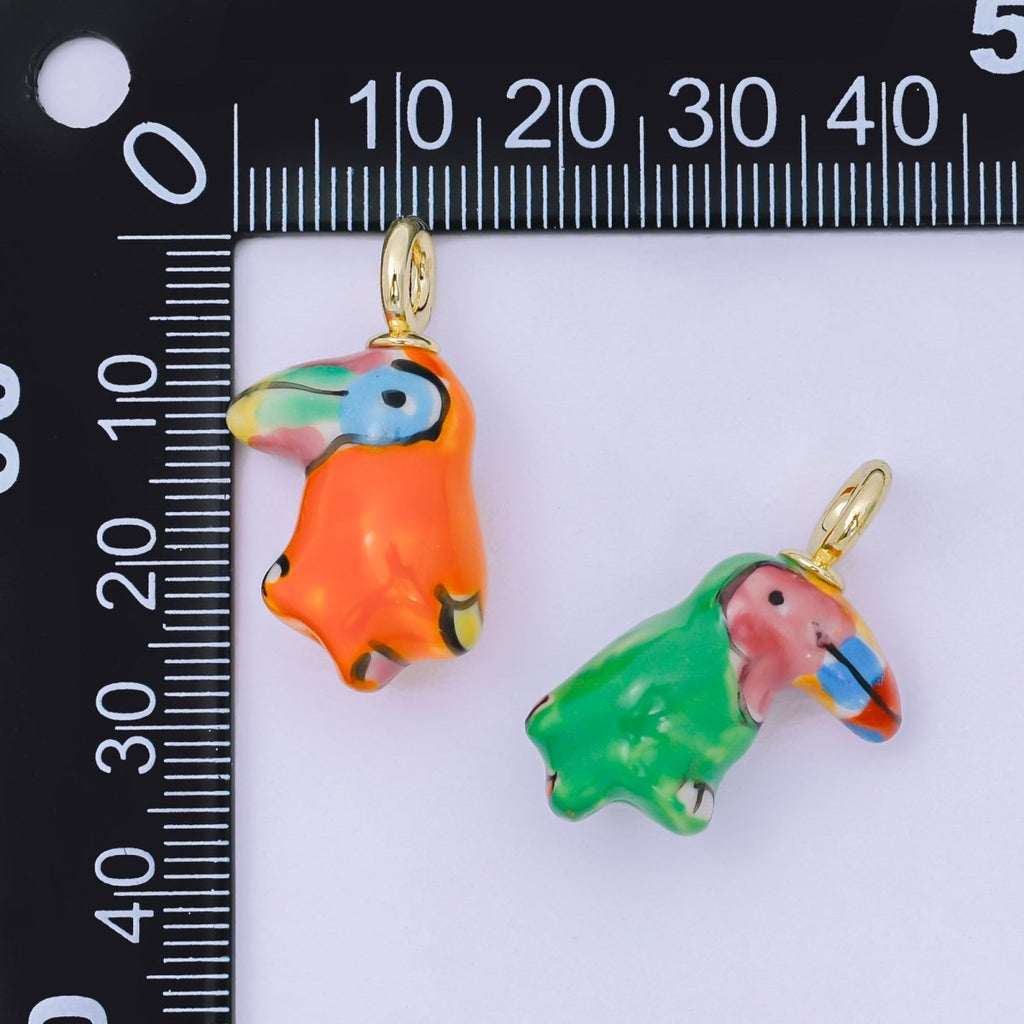 24K Gold Filled 29.5mm Green, Orange, Black Ceramic Parrots Rio Bird Charm | AF1263 - AF1267