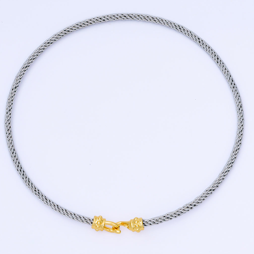 24K Gold Filled 4mm Twisted Rope Mixed Metal Necklace | WA-3898