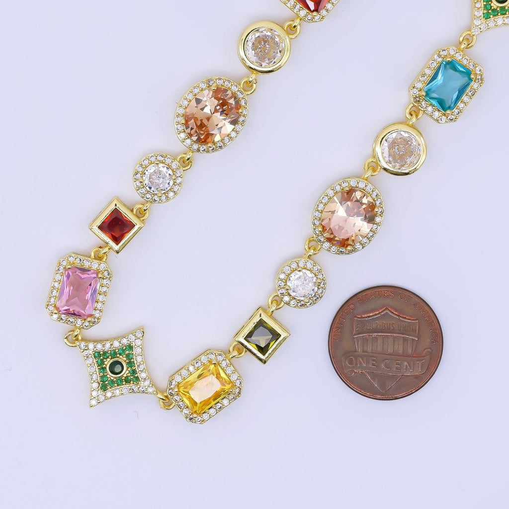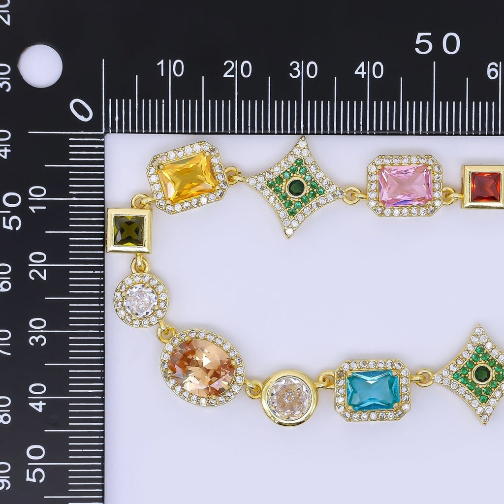 24K Gold Filled Multicolor Geometric Cluster CZ Micro Paved 18 Inch Necklace | WA-1285