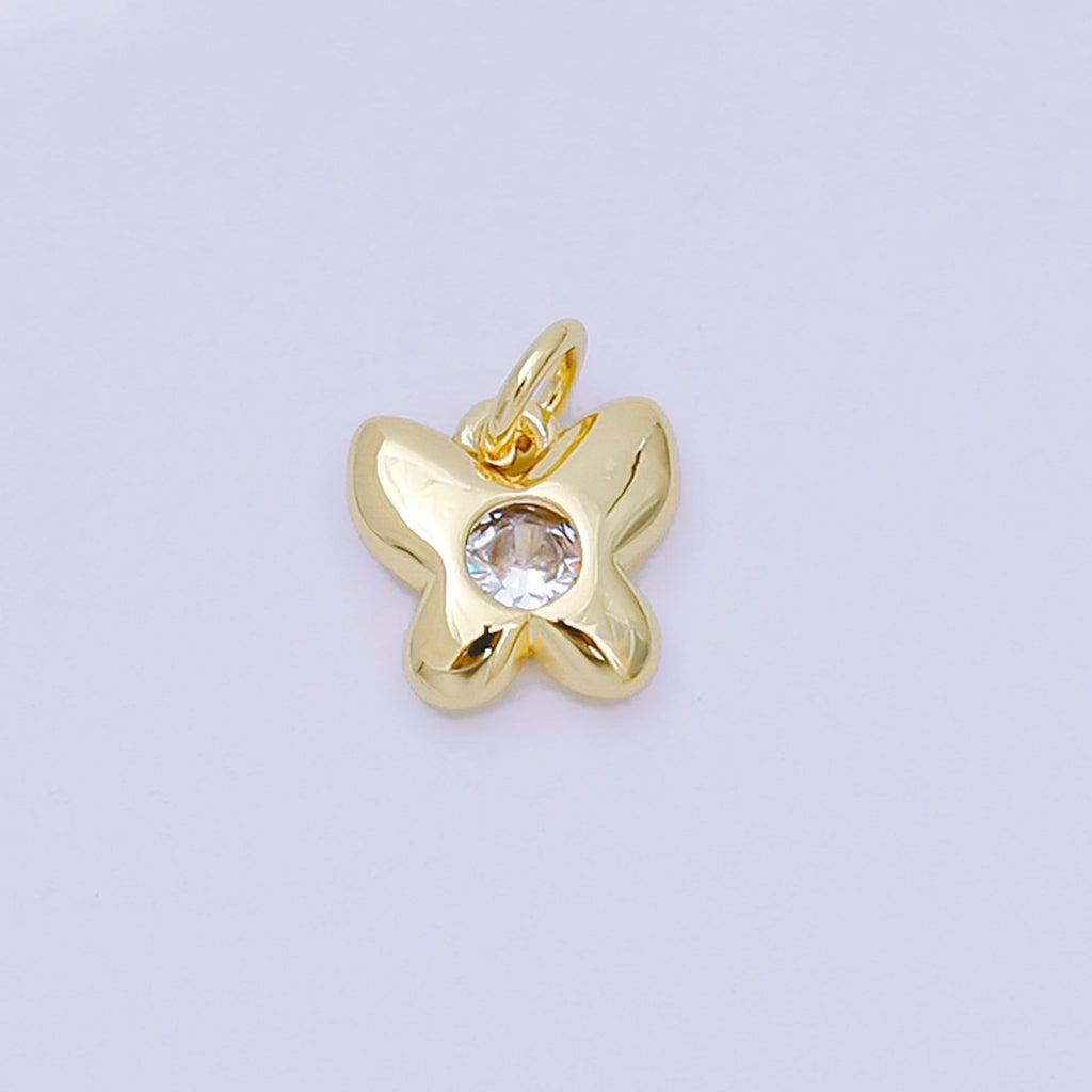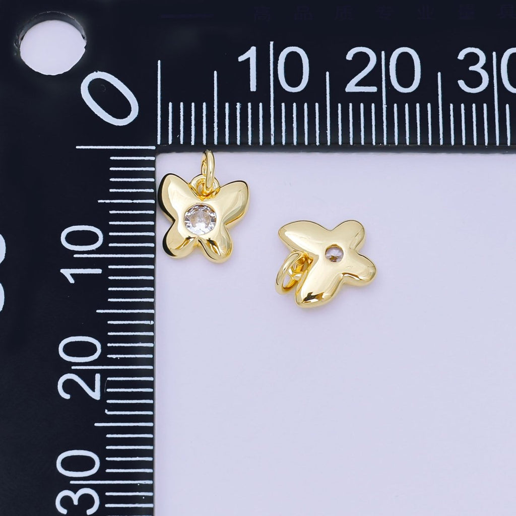 24K Gold Filled 8mm Round CZ Tiny Butterfly Mariposa Charm | M100