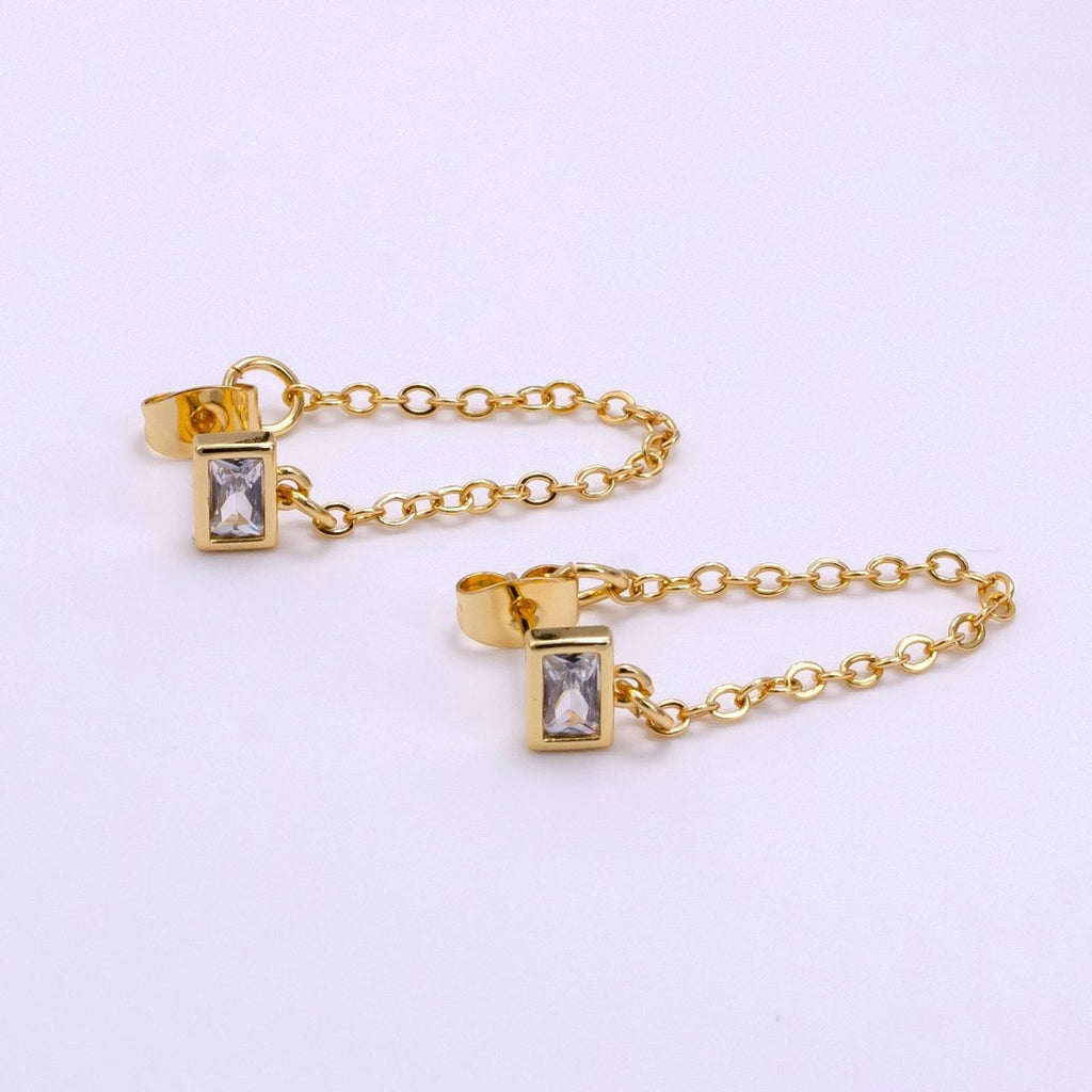 14K Gold Filled Clear Baguette CZ Cable Chain Minimalist Drop Stud Earrings