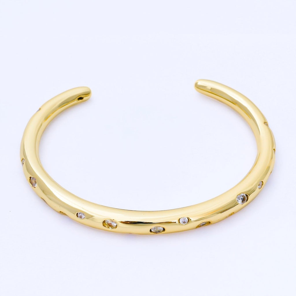 24K Gold Filled Clear CZ Dotted Cuff Bracelet | WA-1691
