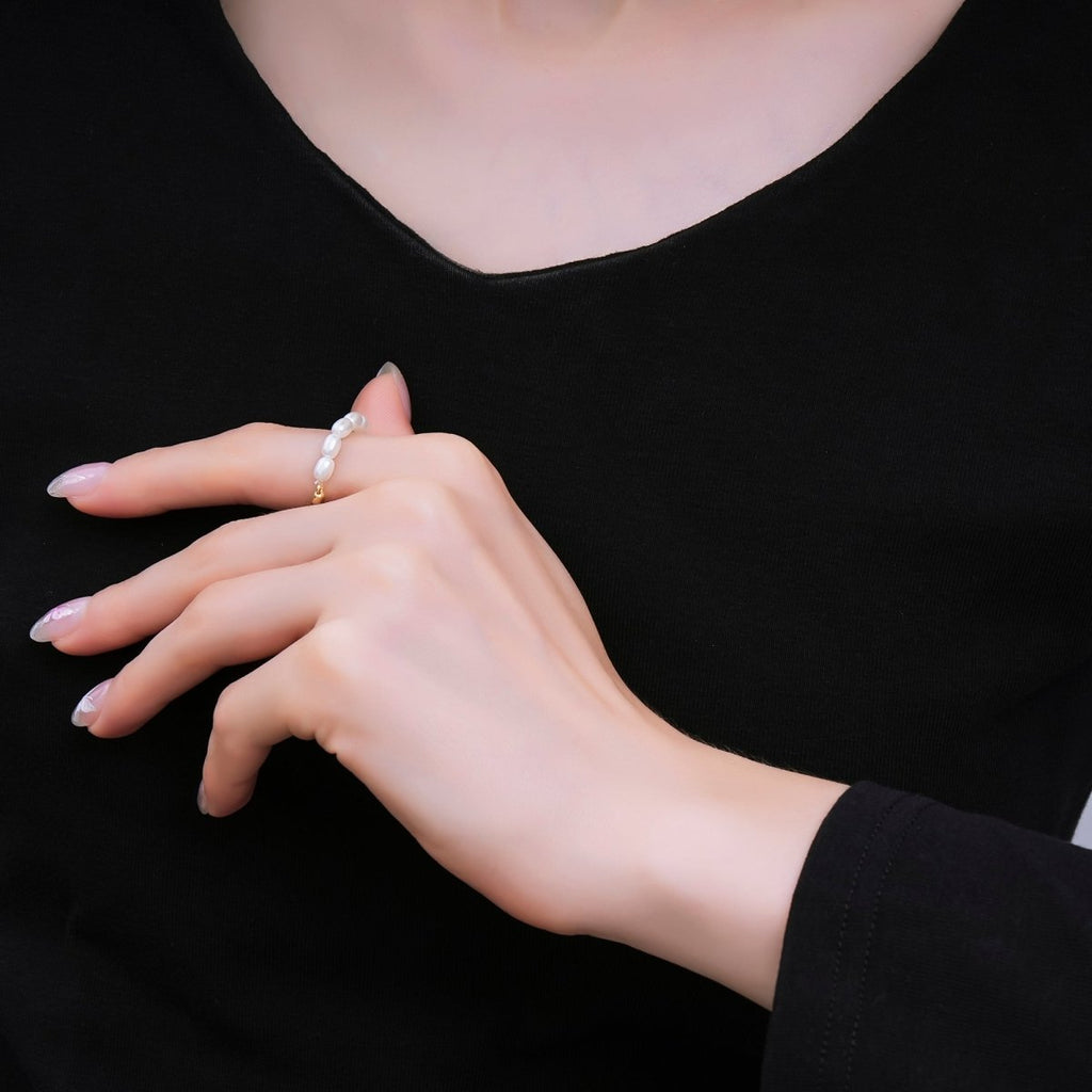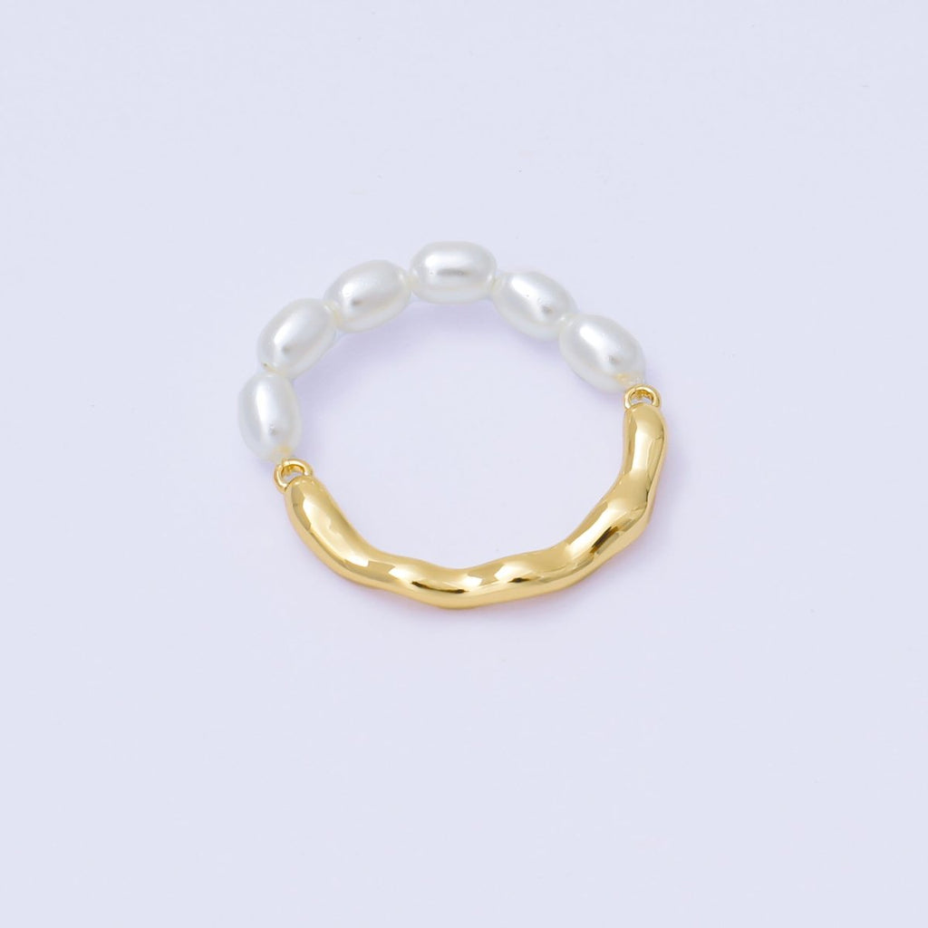 24K Gold Filled Shell Pearl Molten Linear Half Ring | O2007