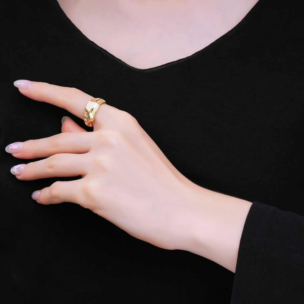 24K Gold Filled Hammered Freeform Round Open Ring | O377